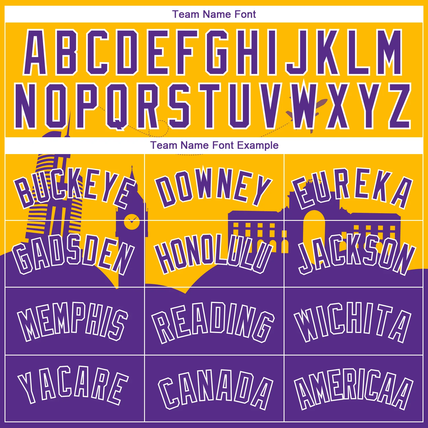 Custom Gold Purple-White Holiday Travel Monuments Silhouette Authentic City Edition Basketball Jersey