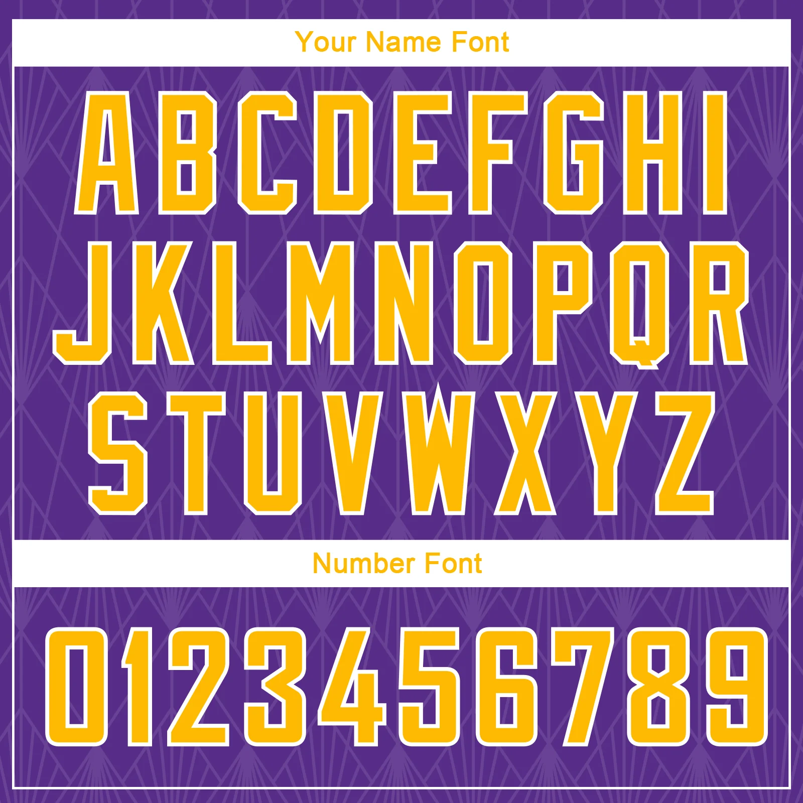 Custom Purple Gold-White Geometric Shapes And Side Stripes Authentic City Edition Basketball Jersey