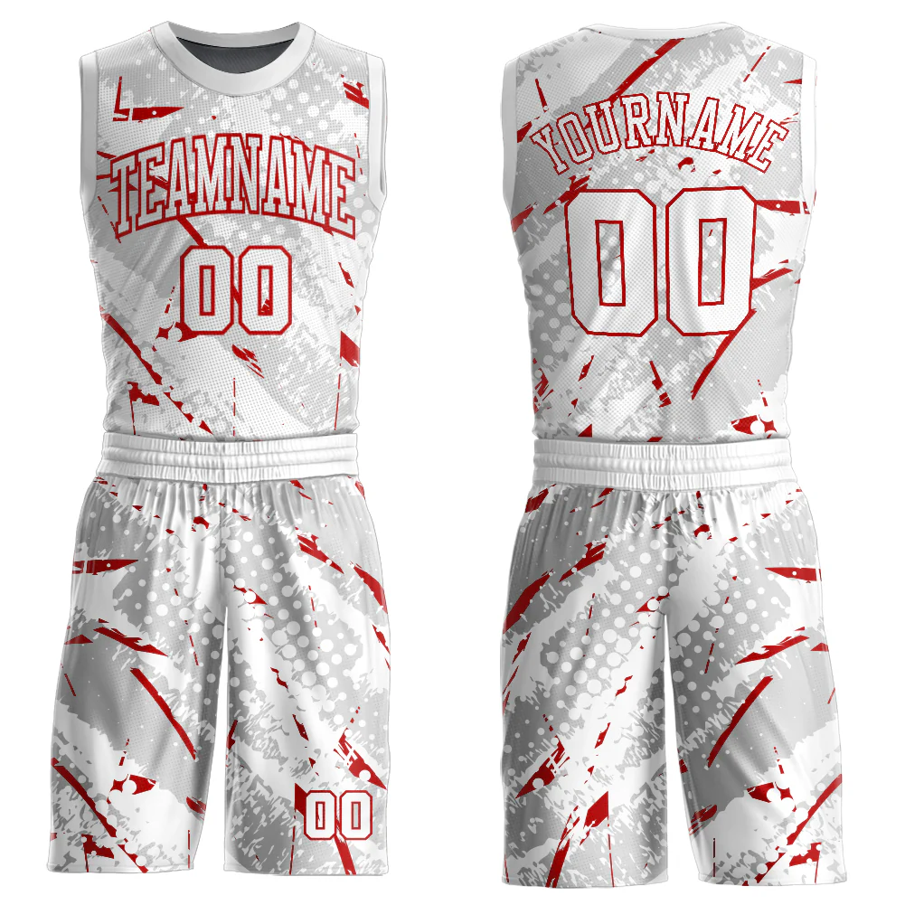 Custom White Red Bright Lines Round Neck Sublimation Basketball Suit Jersey