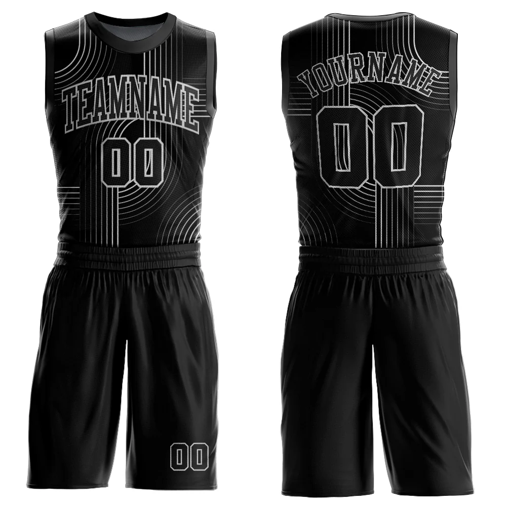 Custom Black Light Gray Tracks Round Neck Sublimation Basketball Suit Jersey