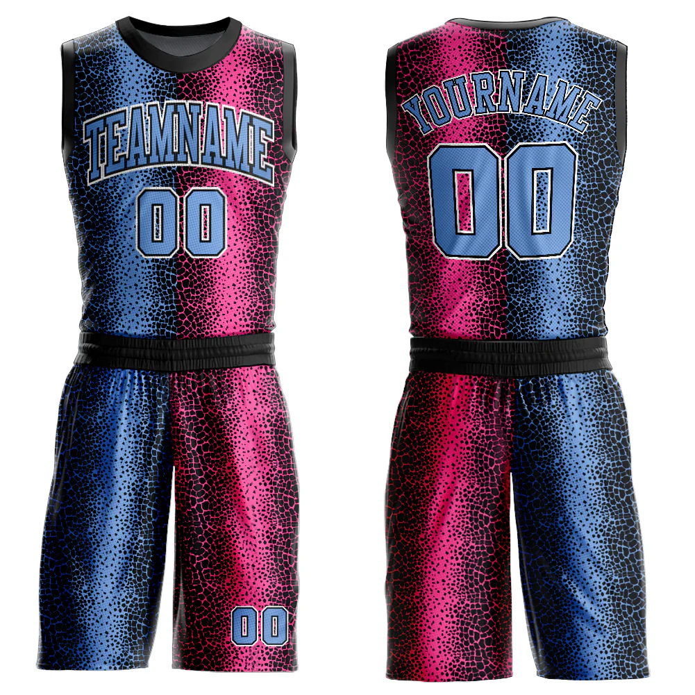 Custom Black Light Blue-Pink Animal Fur Print Round Neck Sublimation Basketball Suit Jersey