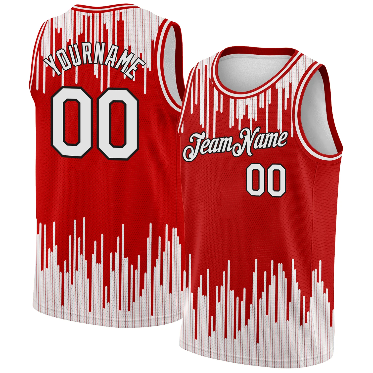 Custom Red White-Black Abstract Vertical Lines Authentic City Edition Basketball Jersey