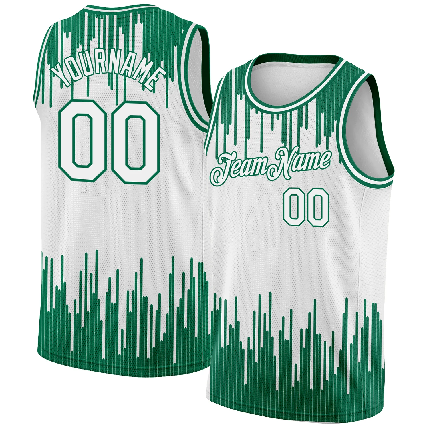 Custom White Kelly Green Abstract Vertical Lines Authentic City Edition Basketball Jersey