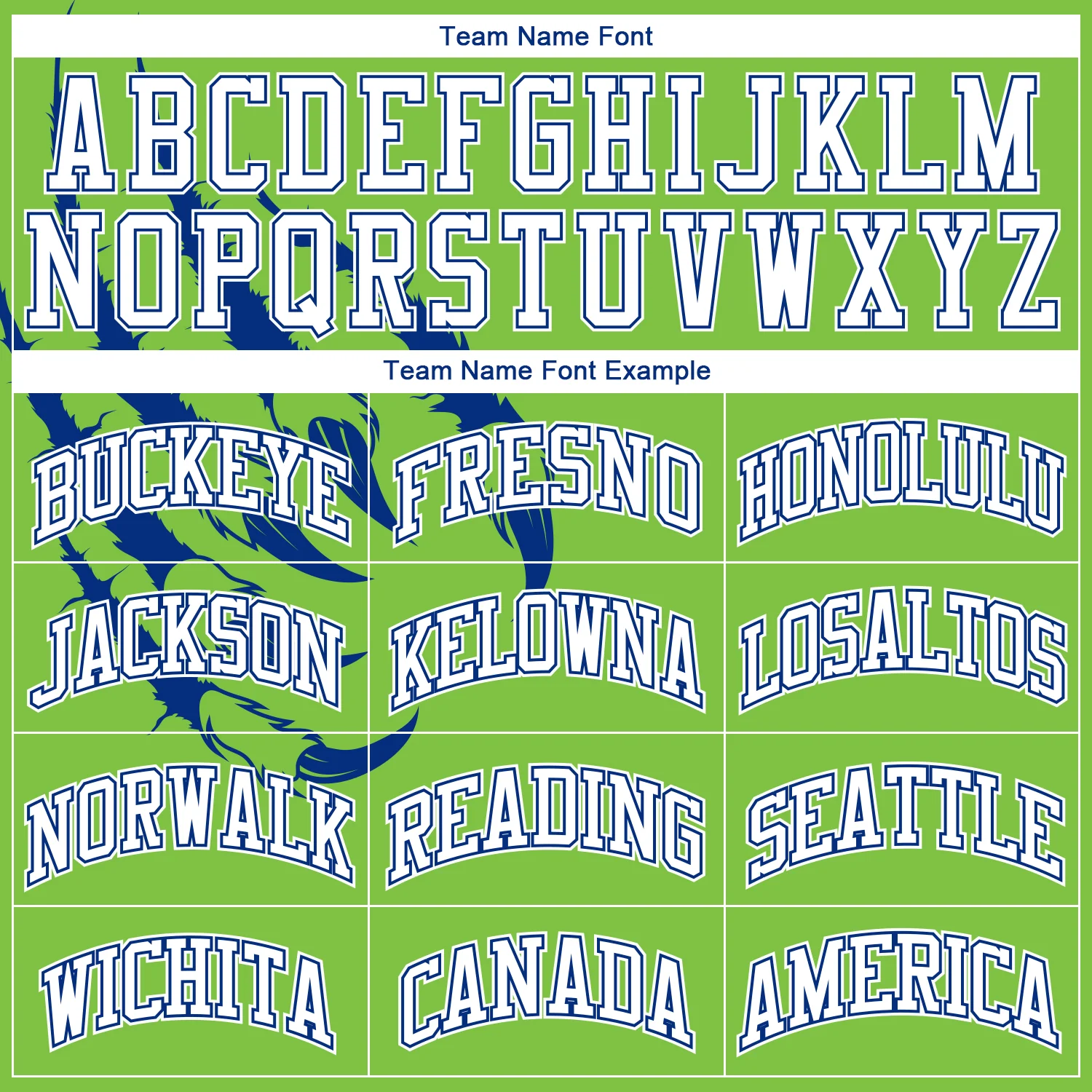 Custom Neon Green White-Royal Animals Claws Round Neck Sublimation Basketball Suit Jersey