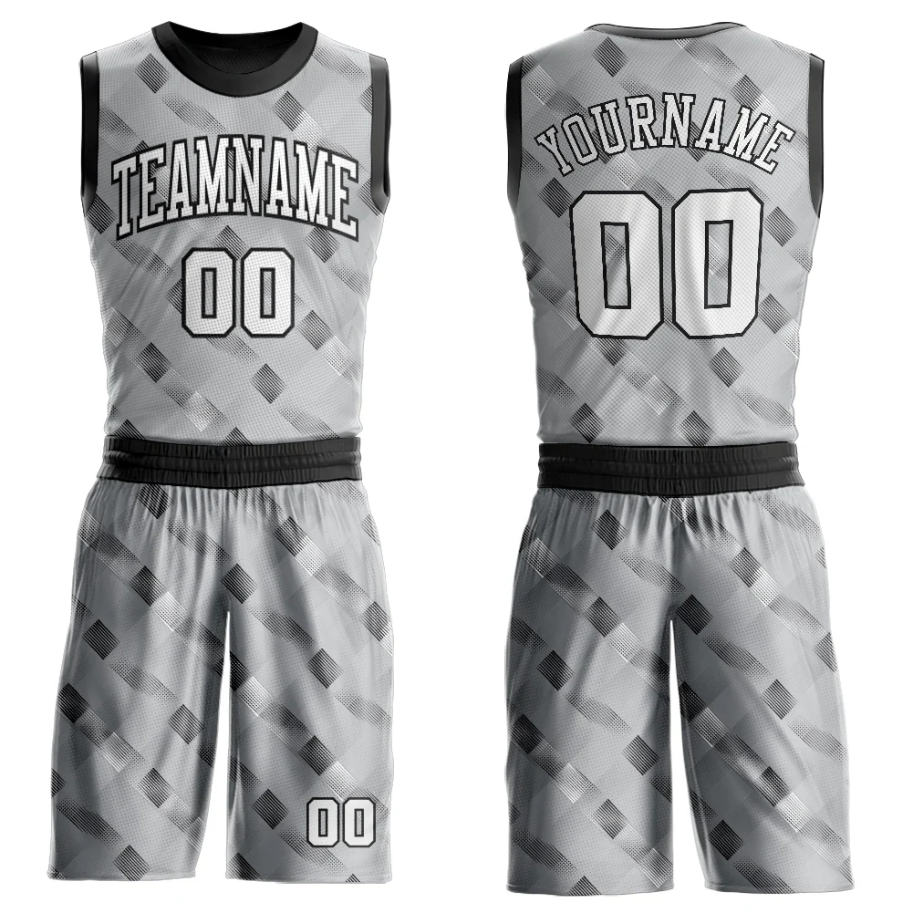 Custom Gray White-Black Round Neck Sublimation Basketball Suit Jersey
