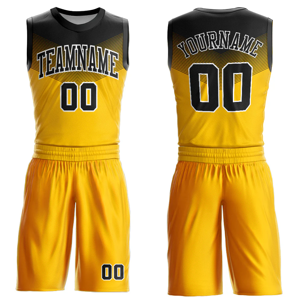 Custom Gold Black-White Round Neck Sublimation Basketball Suit Jersey