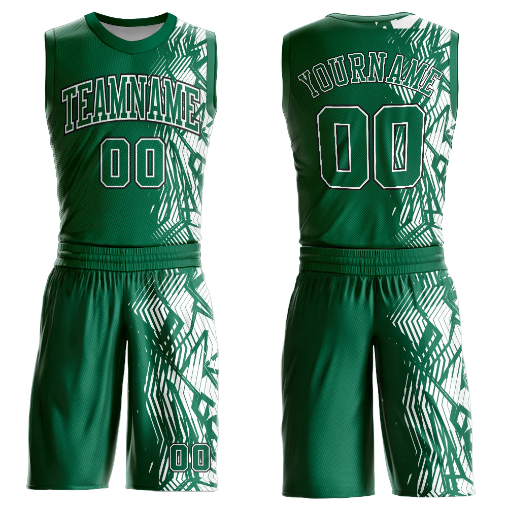 Custom Kelly Green Black-White Round Neck Sublimation Basketball Suit Jersey