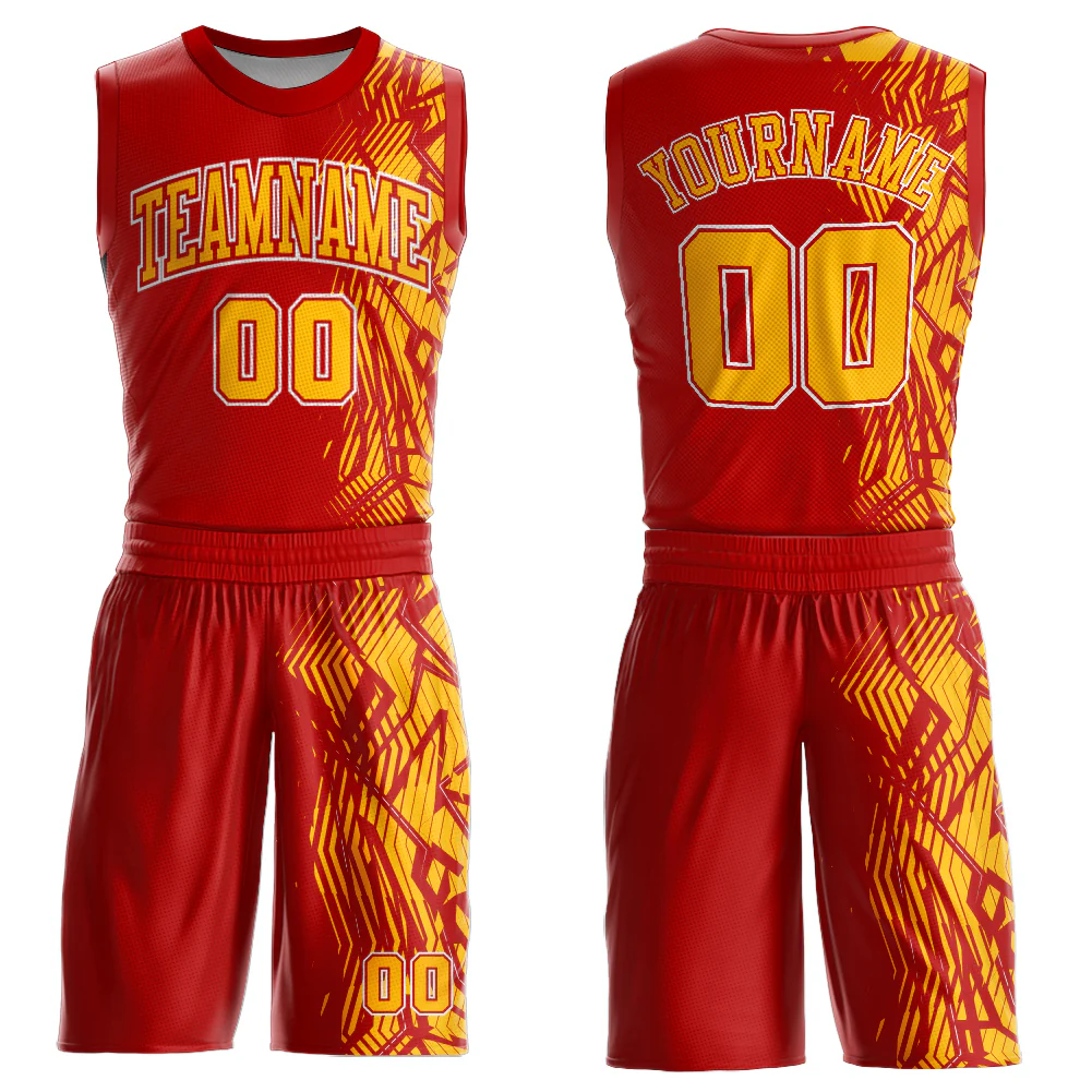 Custom Red Gold-White Round Neck Sublimation Basketball Suit Jersey