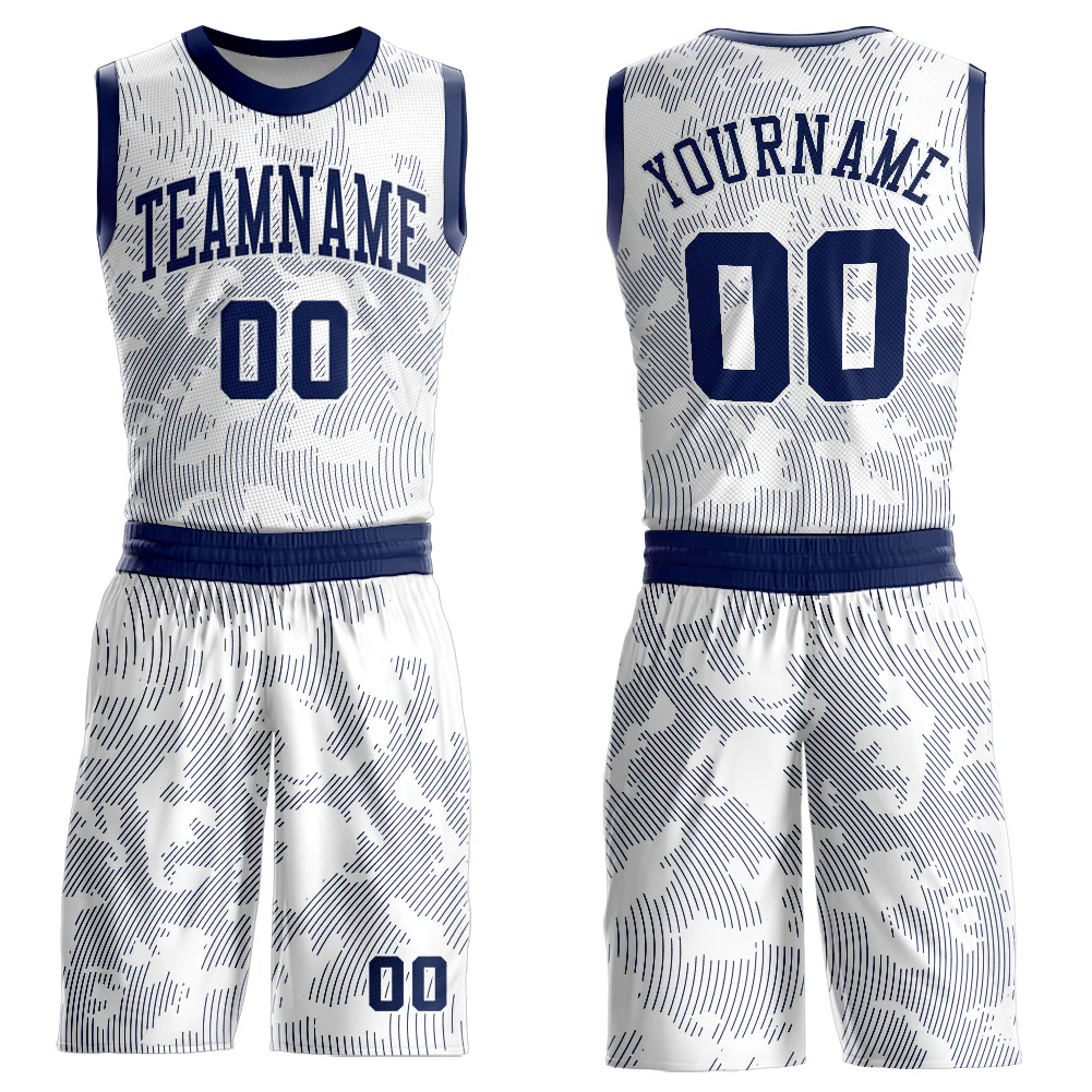 Custom White Navy Round Neck Sublimation Basketball Suit Jersey