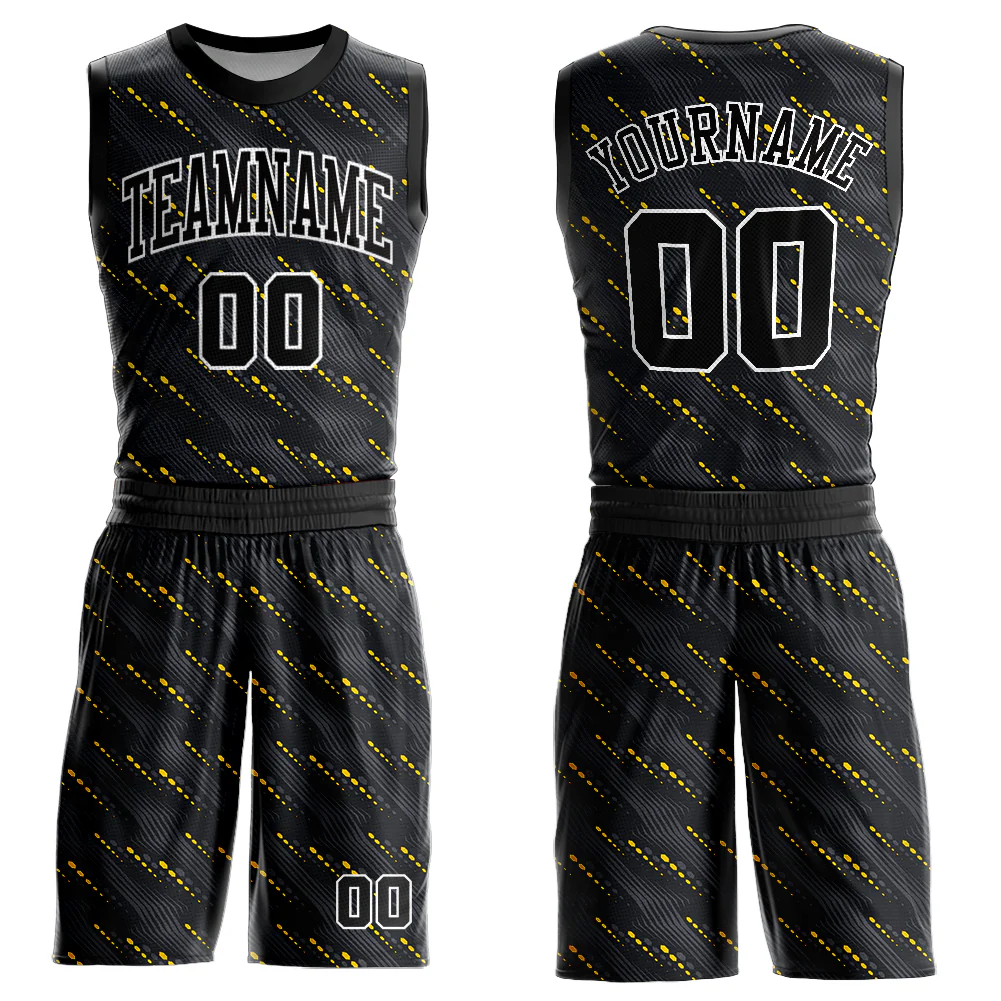 Custom Black Gold-White Round Neck Sublimation Basketball Suit Jersey