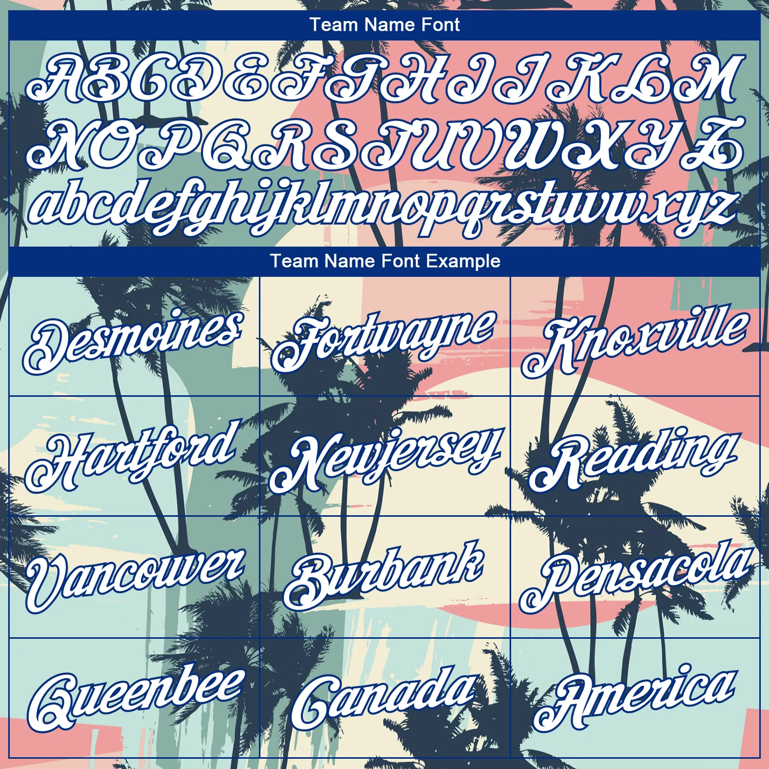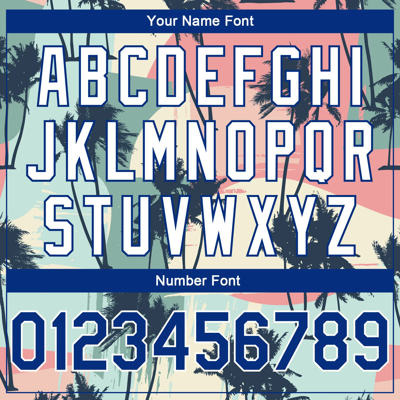 Custom Aqua Pink Light Blue-Black 3D Pattern Tropical Beach Hawaii Palm Trees Authentic Basketball Jersey