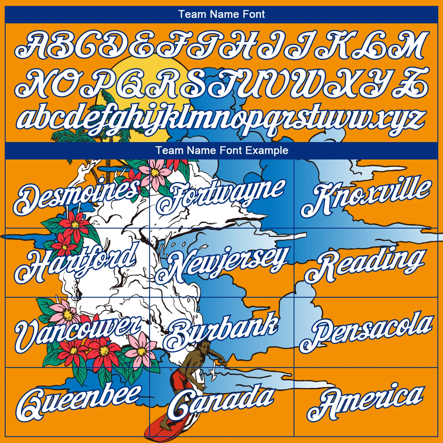 Custom Bay Orange White-Royal 3D Pattern Tropical Beach Hawaii Palm Trees Authentic Basketball Jersey