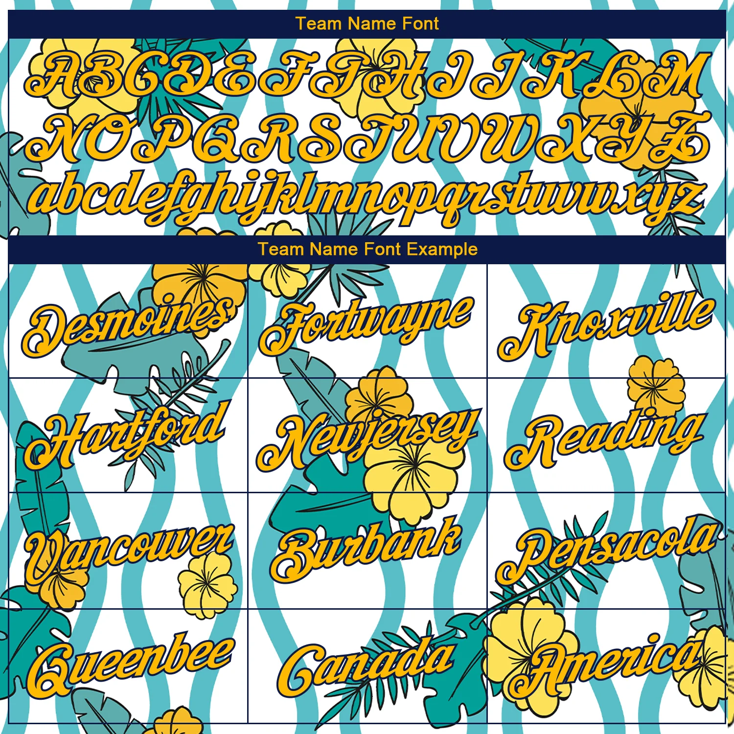 Custom Gold Teal-White 3D Pattern Tropical Beach Hawaii Palm Trees Authentic Basketball Jersey