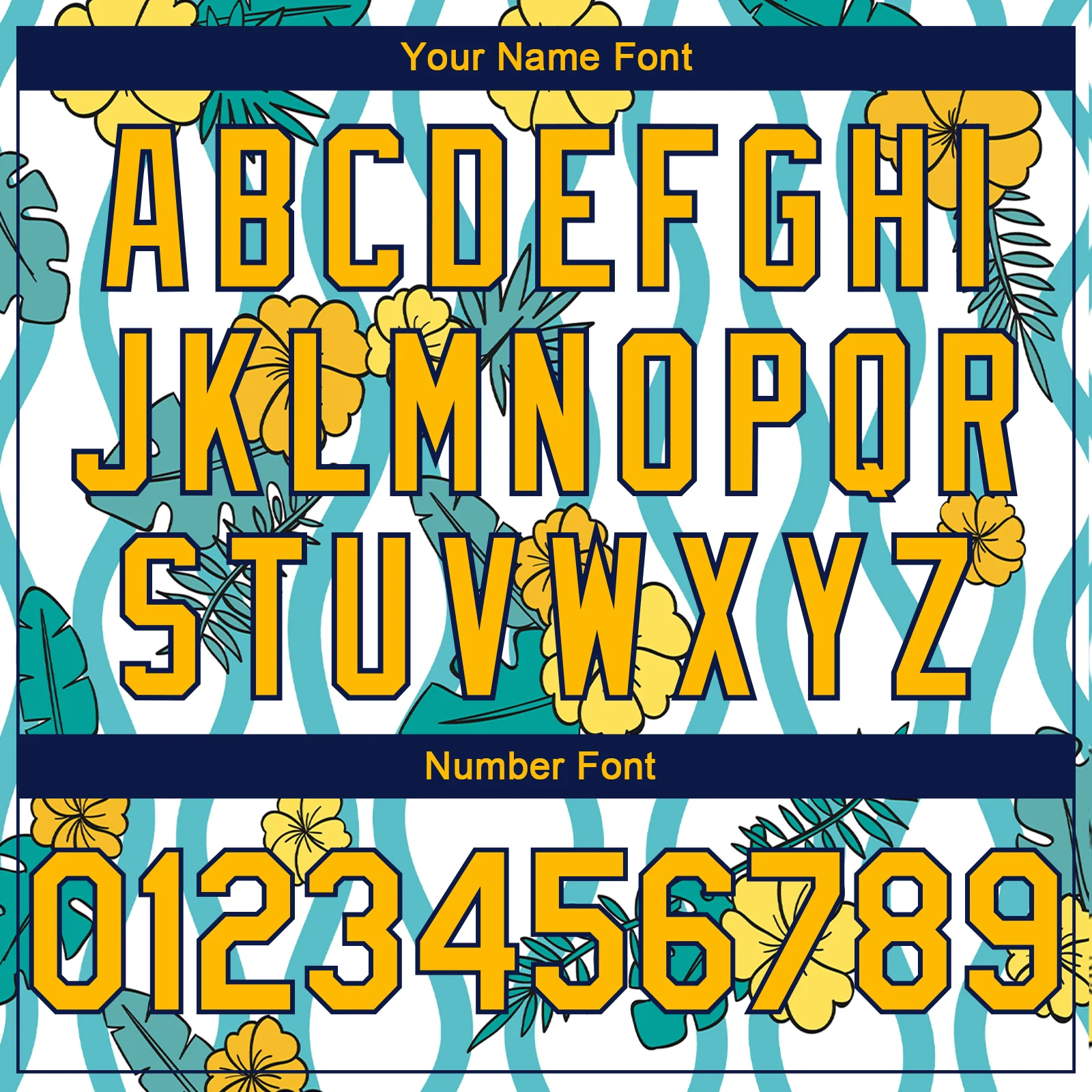 Custom White Gold-Navy 3D Pattern Tropical Hawaii Plant And Flower Authentic Basketball Jersey