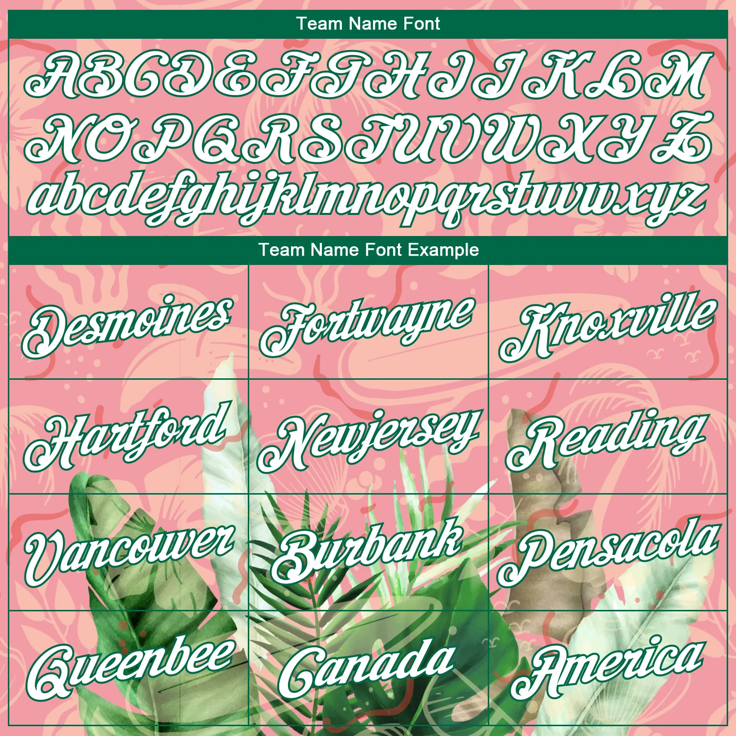 Custom Medium Pink White-Kelly Green 3D Pattern Tropical Hawaii Leaves Authentic Basketball Jersey