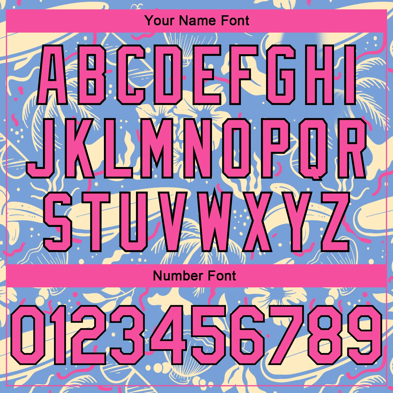 Custom Light Blue Pink-Black 3D Pattern Tropical Hawaii Trees Authentic Basketball Jersey