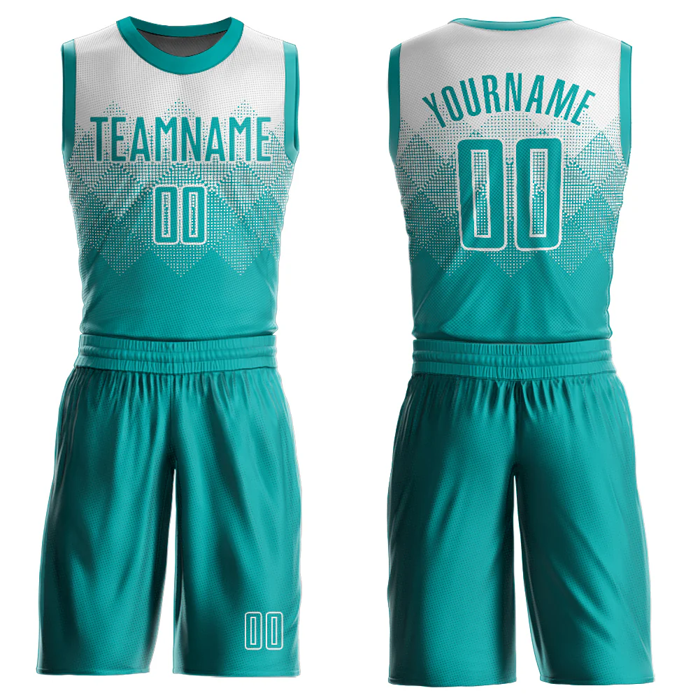 Custom White Aqua Round Neck Sublimation Basketball Suit Jersey