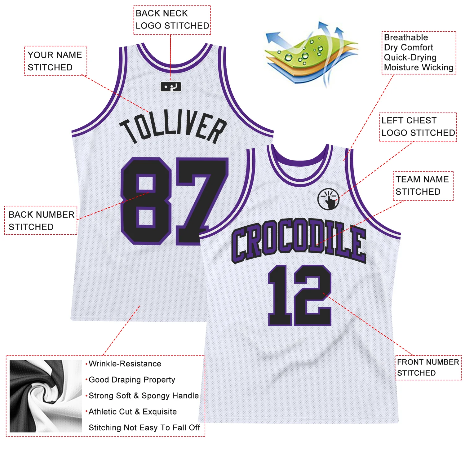 Custom White Black-Purple Authentic Throwback Basketball Jersey