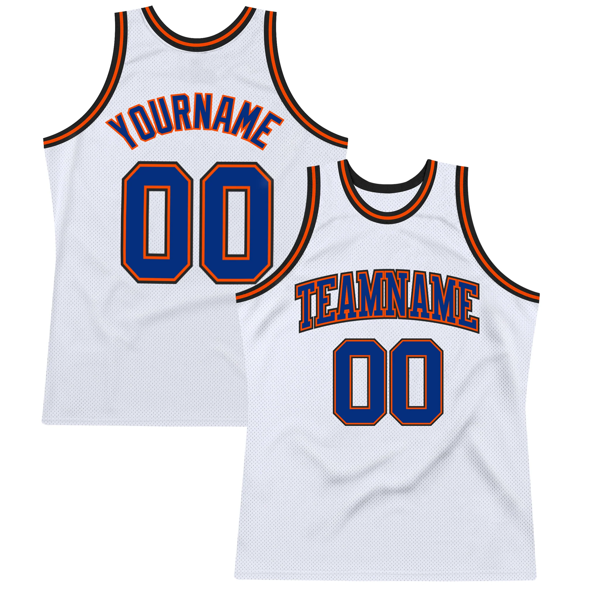 Custom White Royal Orange-Black Authentic Throwback Basketball Jersey