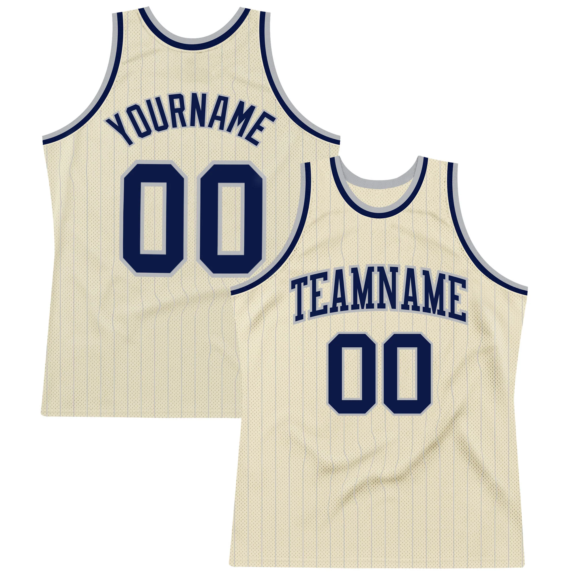 Custom Cream Gray Pinstripe Navy Authentic Basketball Jersey