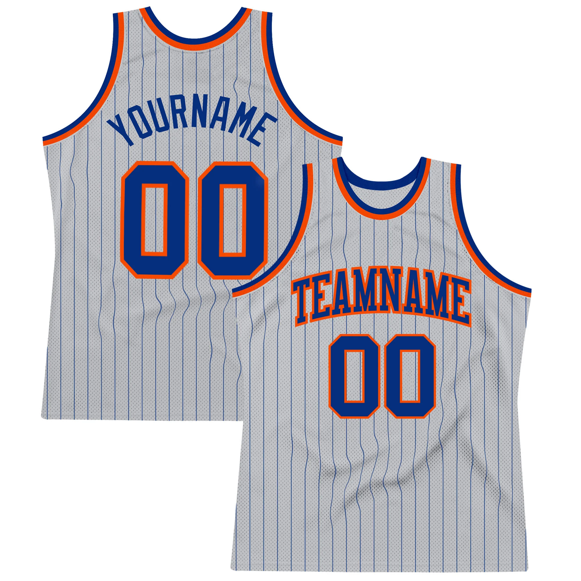 Custom Gray Royal Pinstripe Royal-Orange Authentic Basketball Jersey