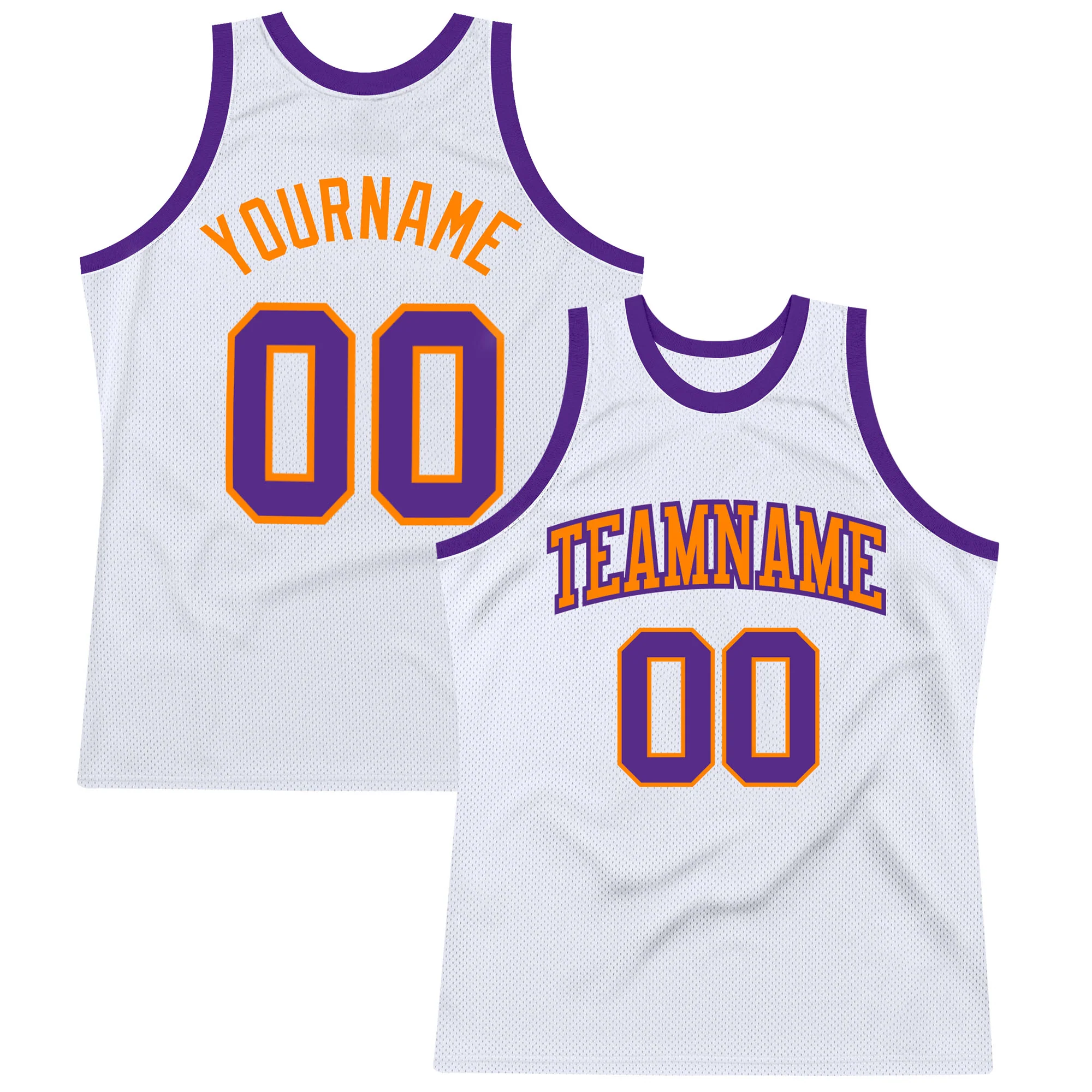 Custom White Purple-Bay Orange Authentic Throwback Basketball Jersey