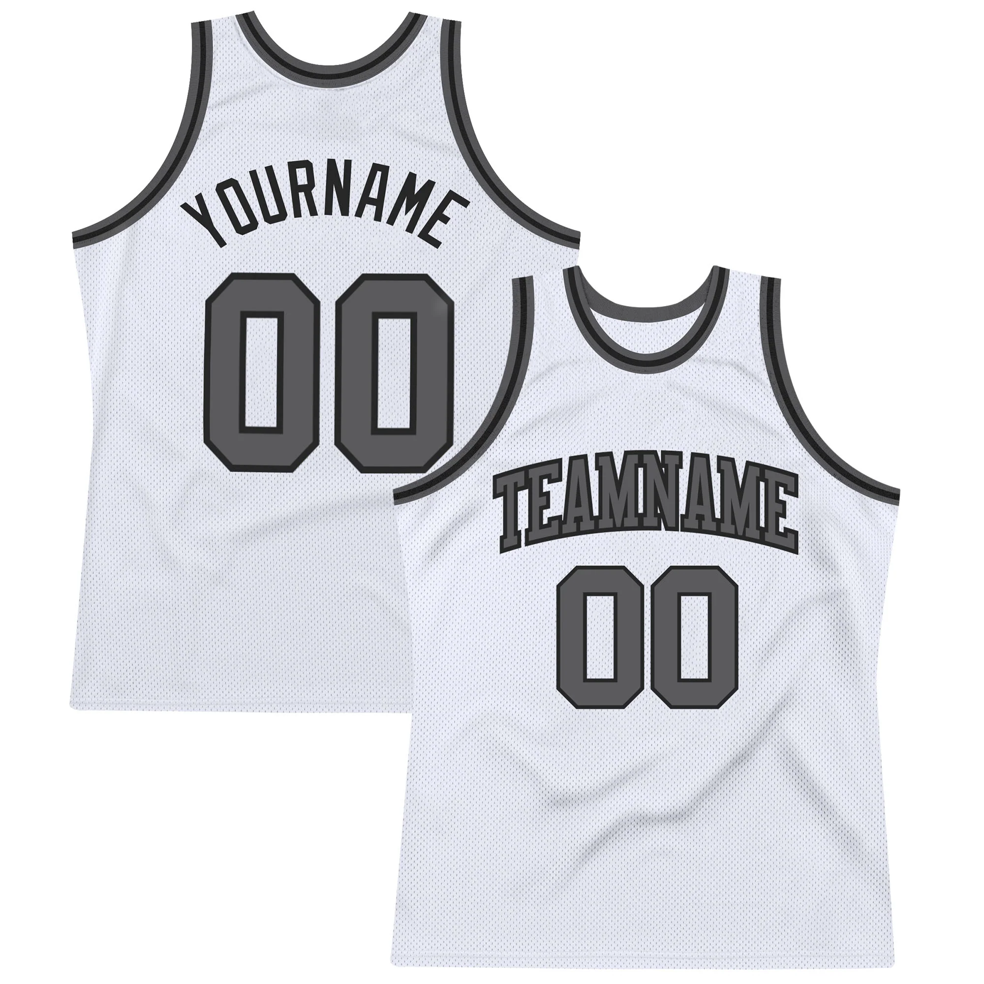 Custom White Steel Gray-Black Authentic Throwback Basketball Jersey