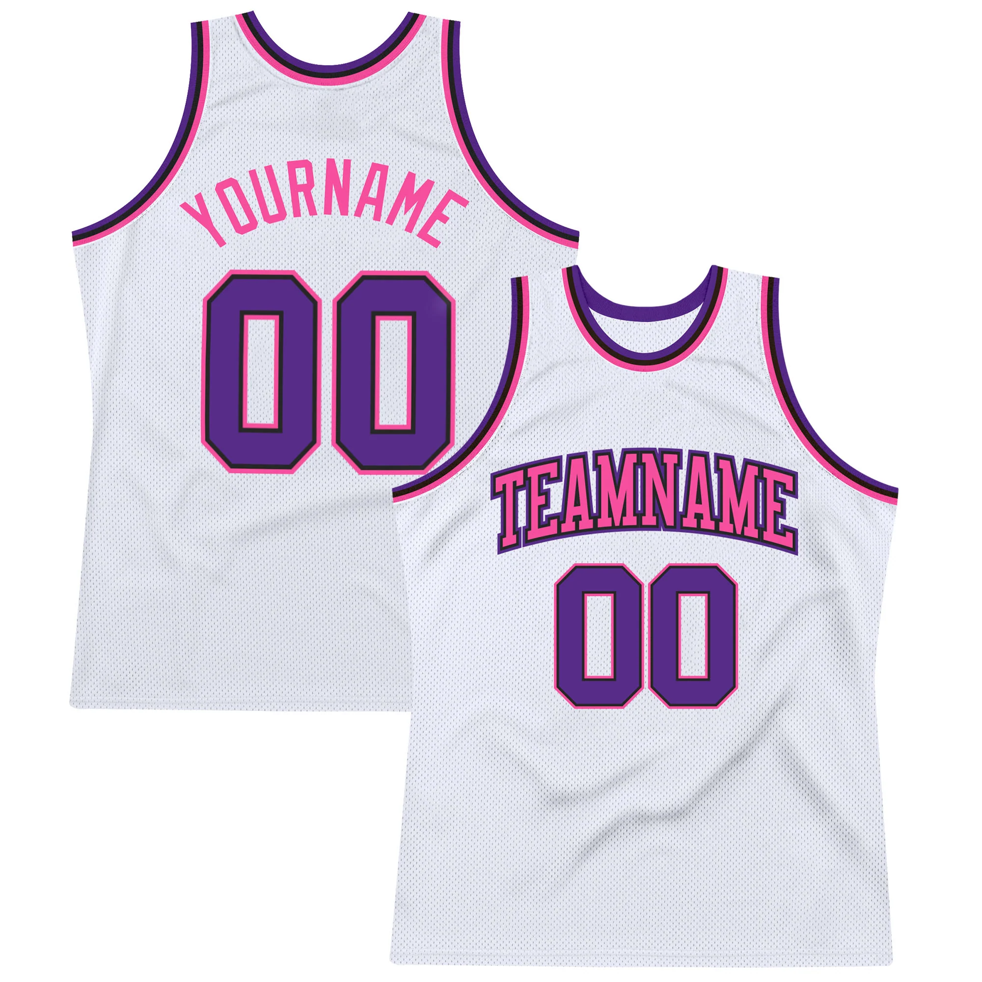 Custom White Purple Black-Pink Authentic Throwback Basketball Jersey