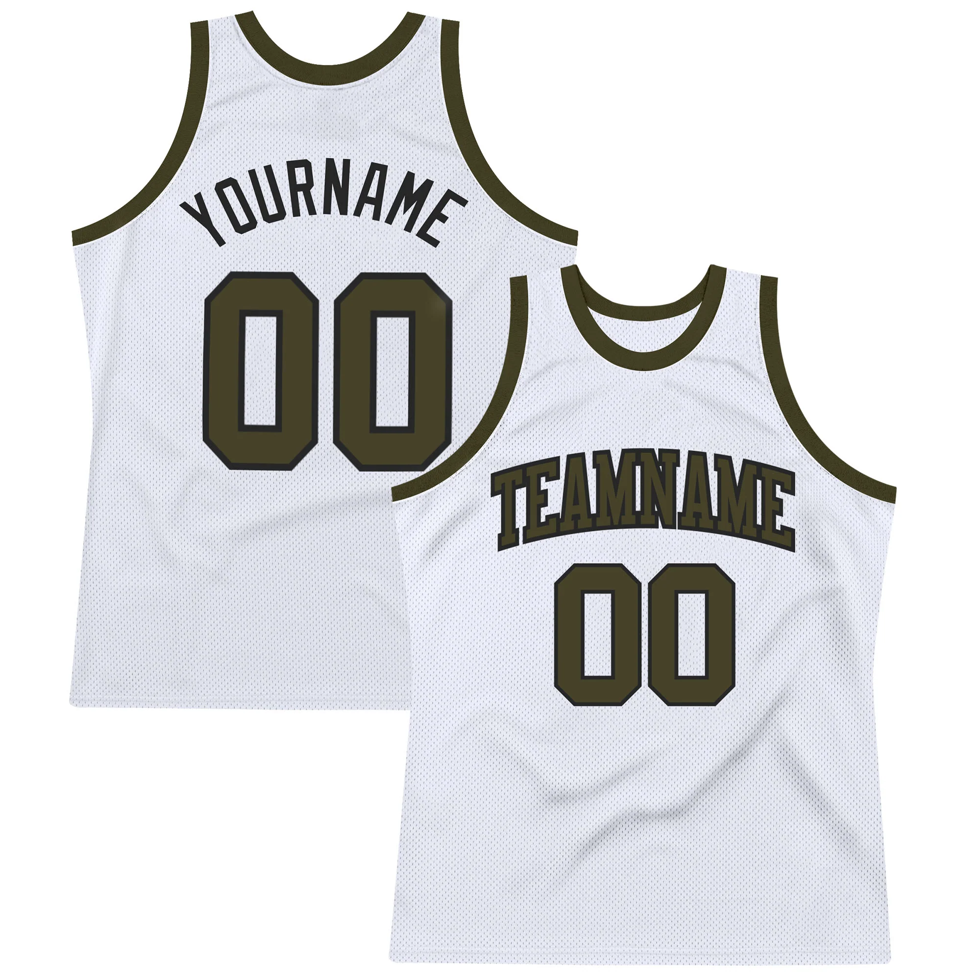 Custom White Olive-Black Authentic Throwback Basketball Jersey