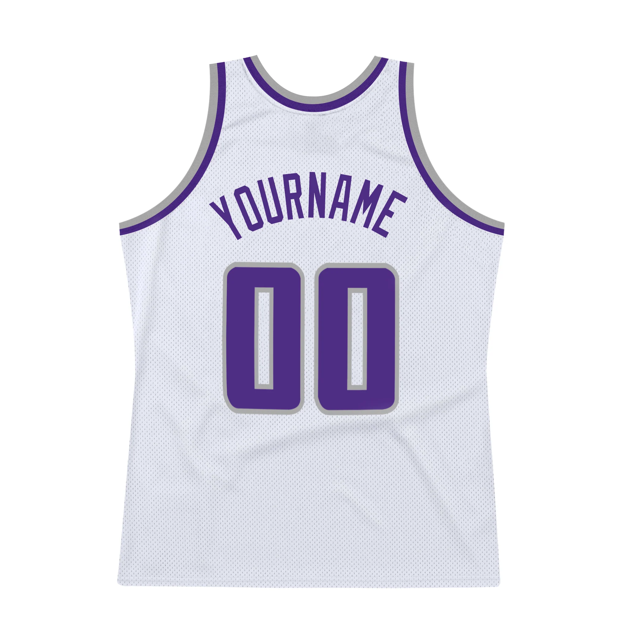Custom White Purple-Gray Authentic Throwback Basketball Jersey