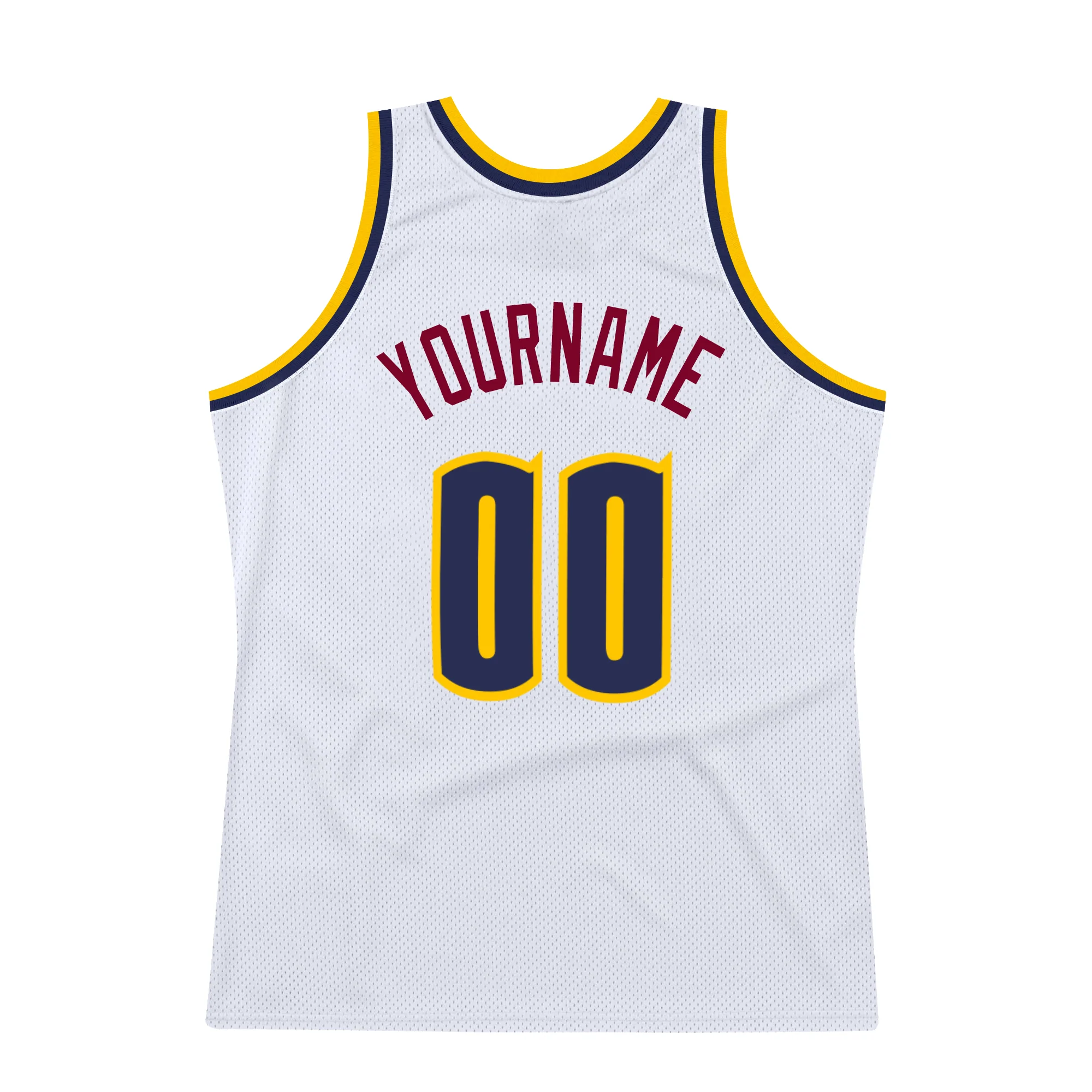 Custom White Navy-Gold Authentic Throwback Basketball Jersey
