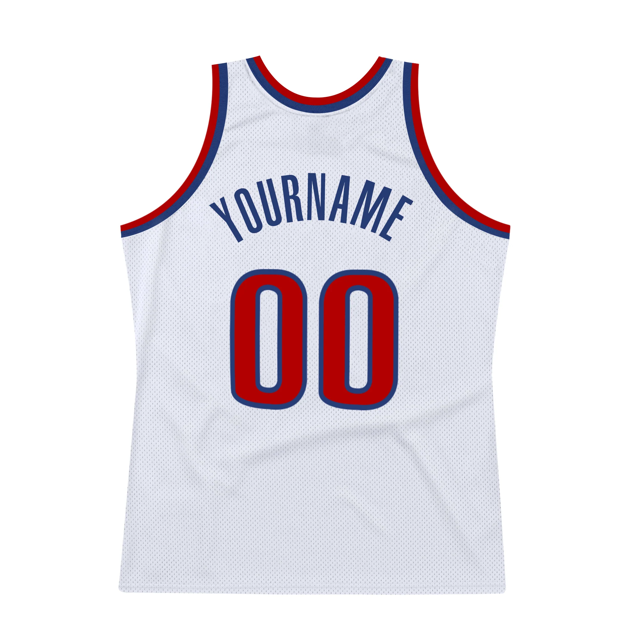 Custom White Red-Royal Authentic Throwback Basketball Jersey