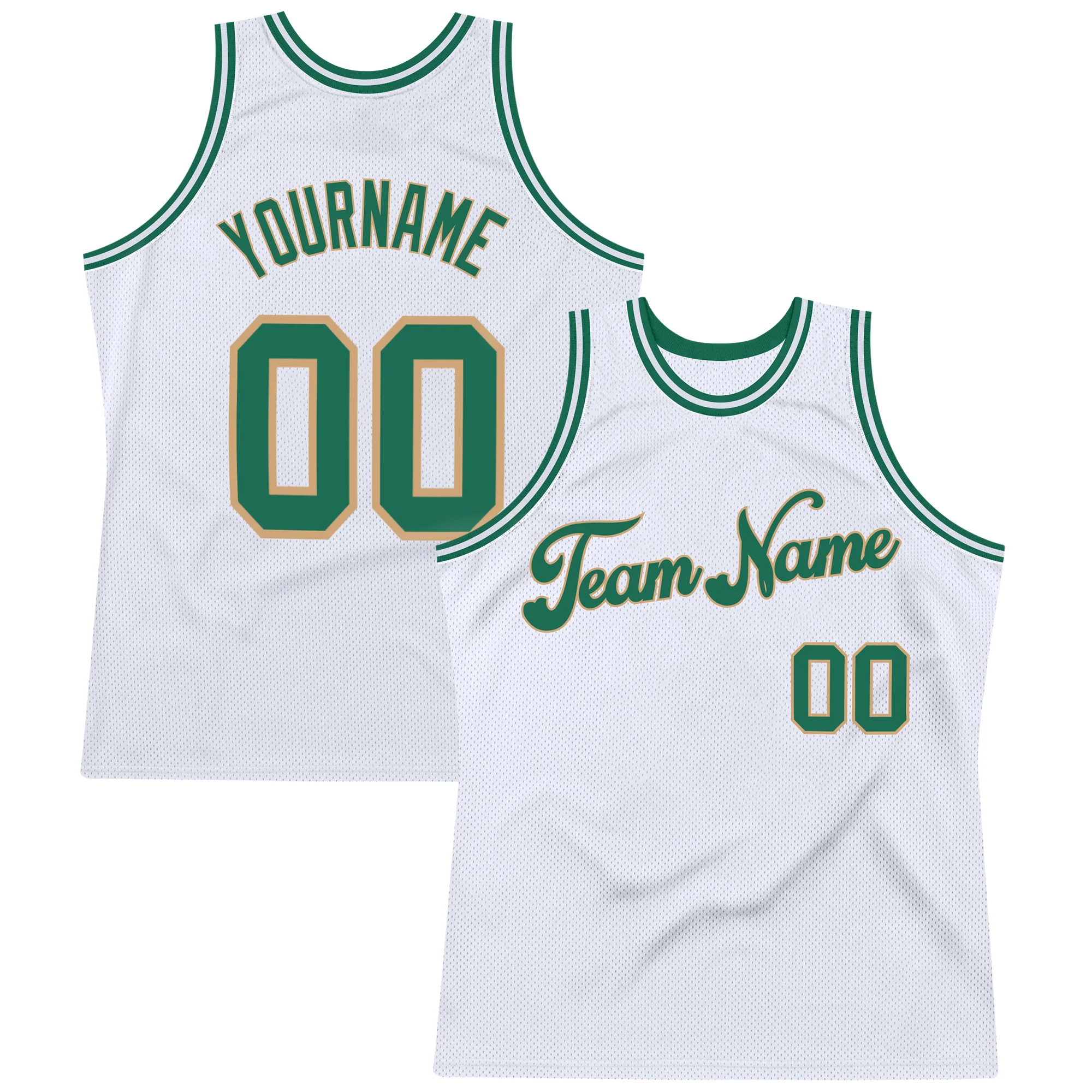Custom White Kelly Green-Old Gold Authentic Throwback Basketball Jersey