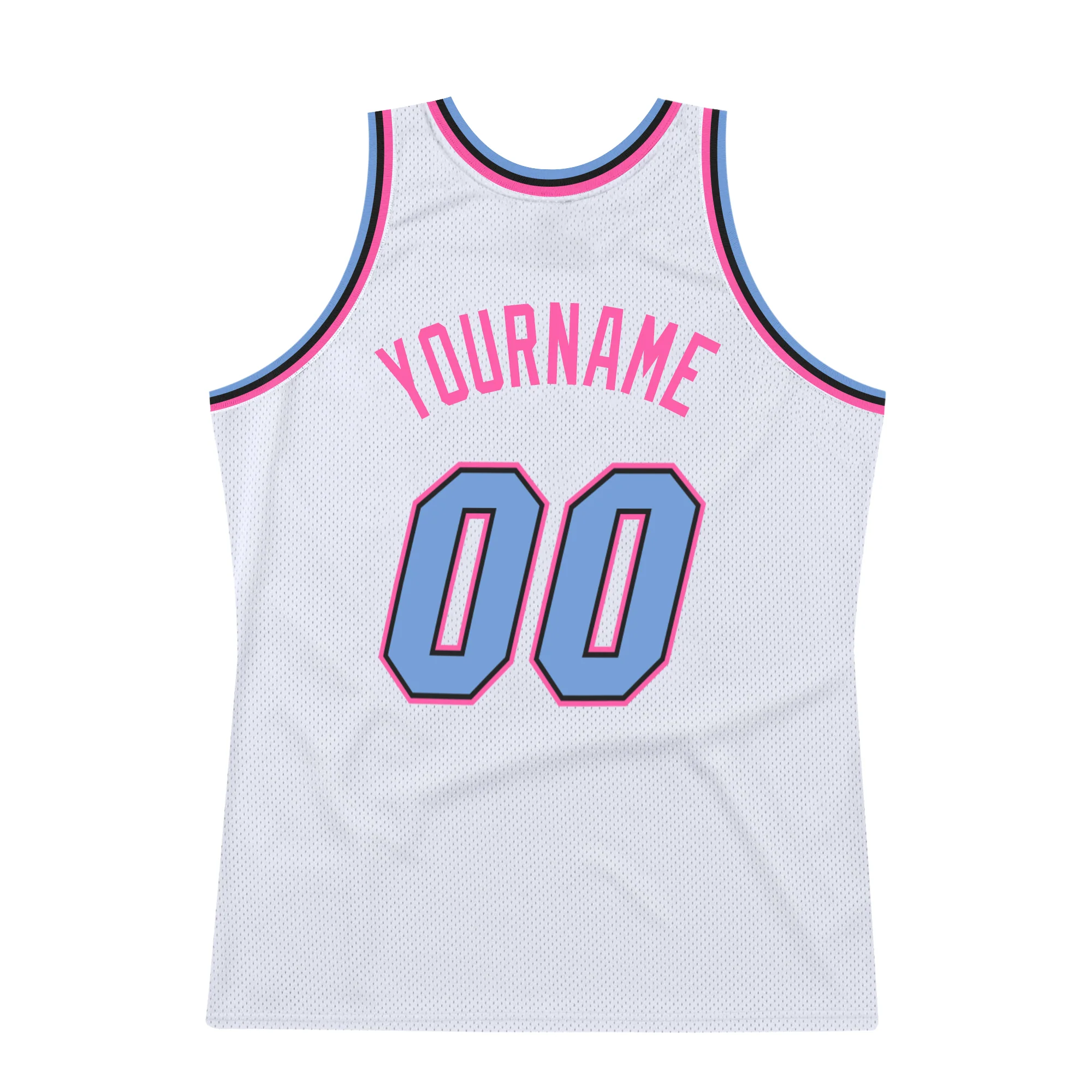 Custom White Light Blue-Pink Authentic Throwback Basketball Jersey