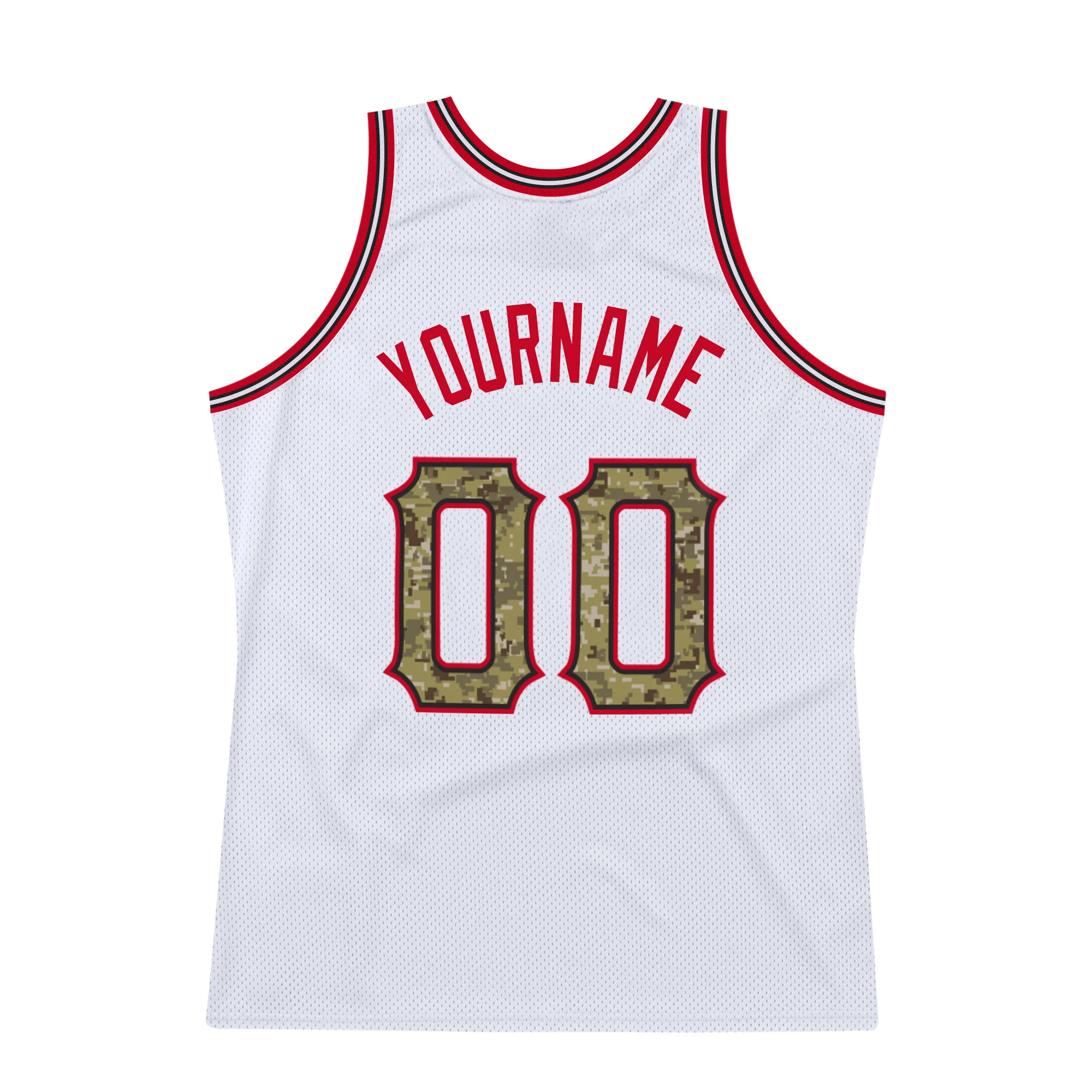 Custom White Camo-Red Authentic Throwback Basketball Jersey