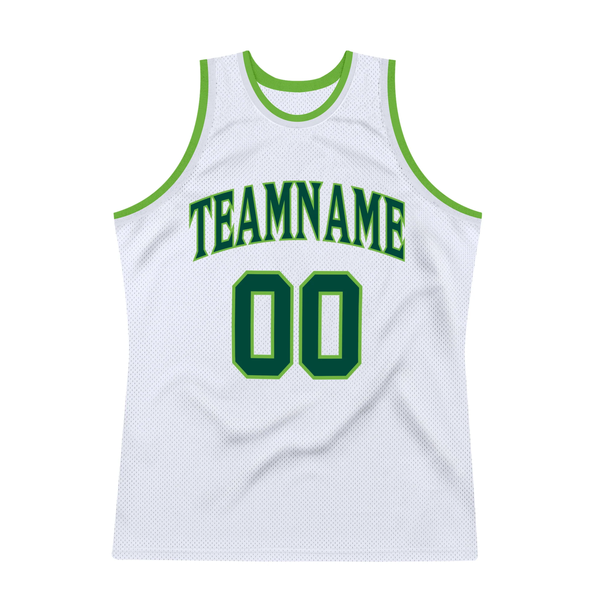 Custom White Hunter Green-Neon Green Authentic Throwback Basketball Jersey