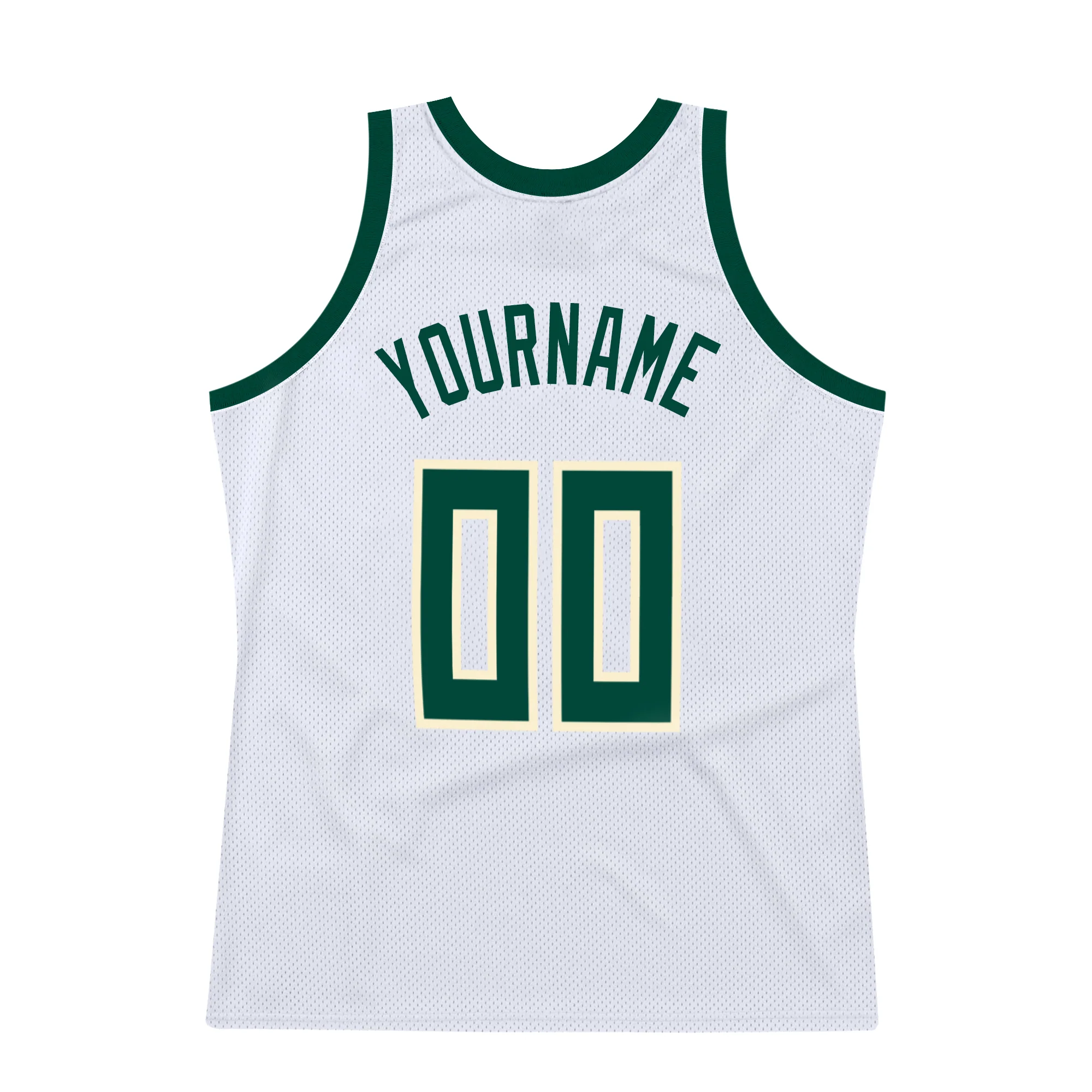 Custom White Hunter Green-Cream Authentic Throwback Basketball Jersey