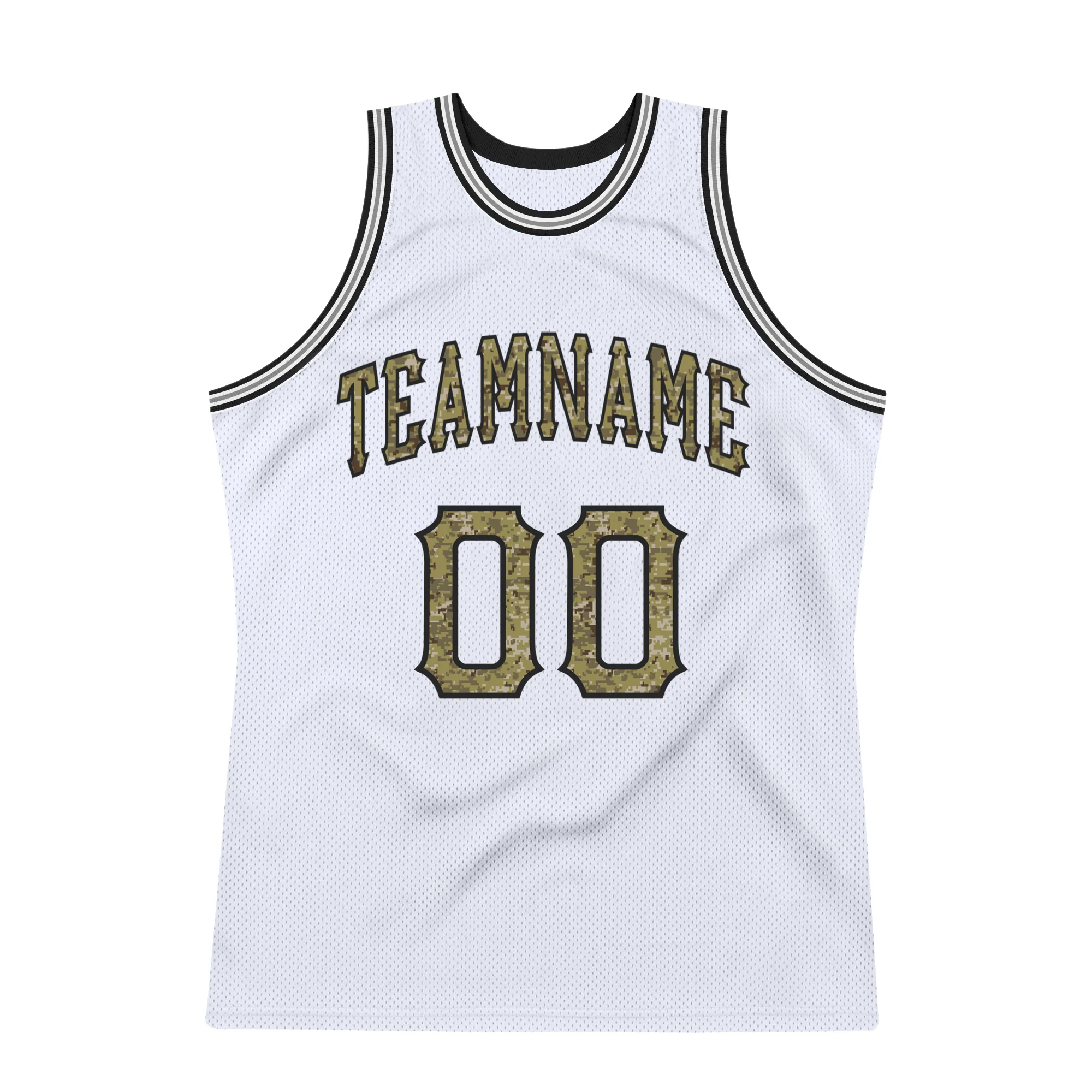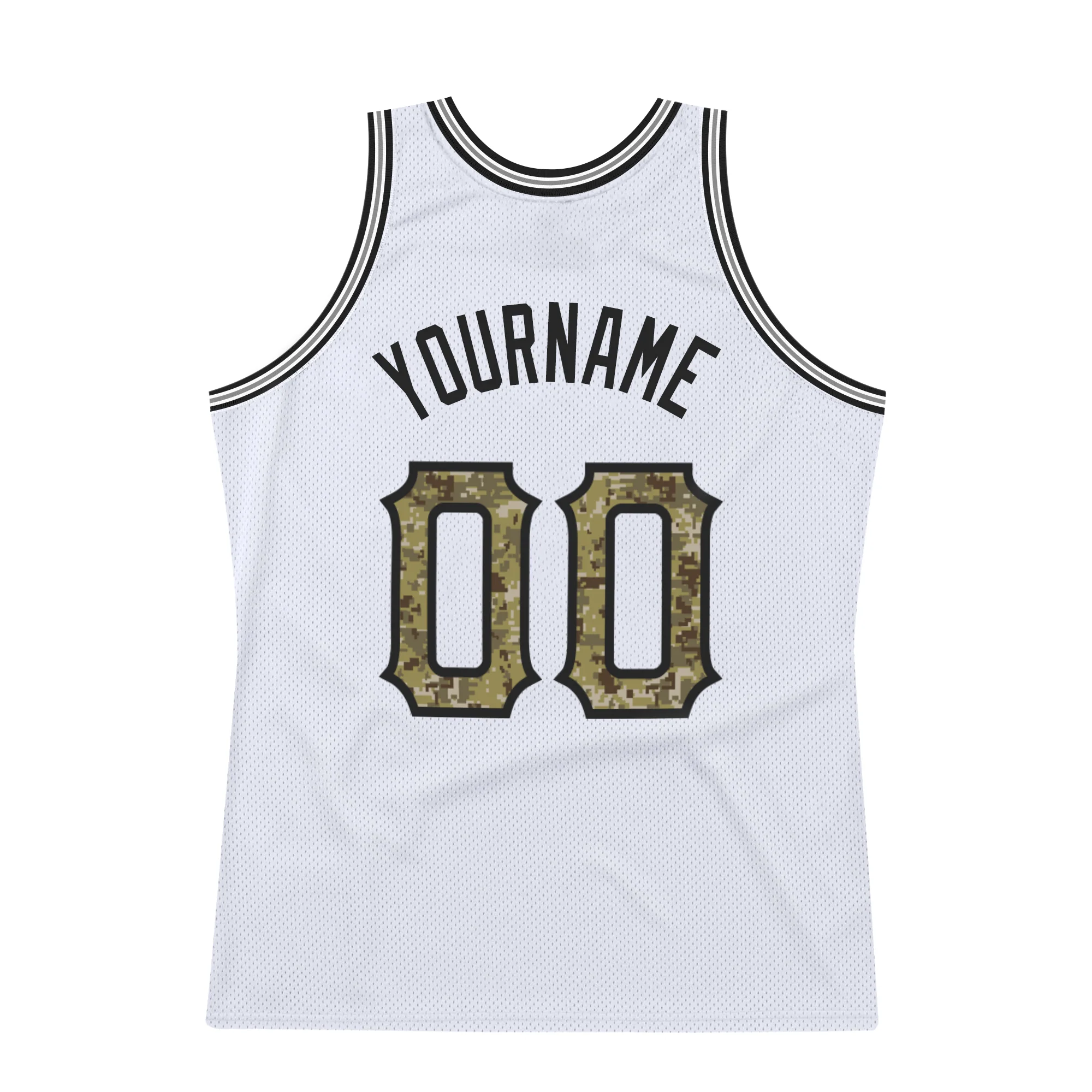Custom White Camo-Gray Authentic Throwback Basketball Jersey