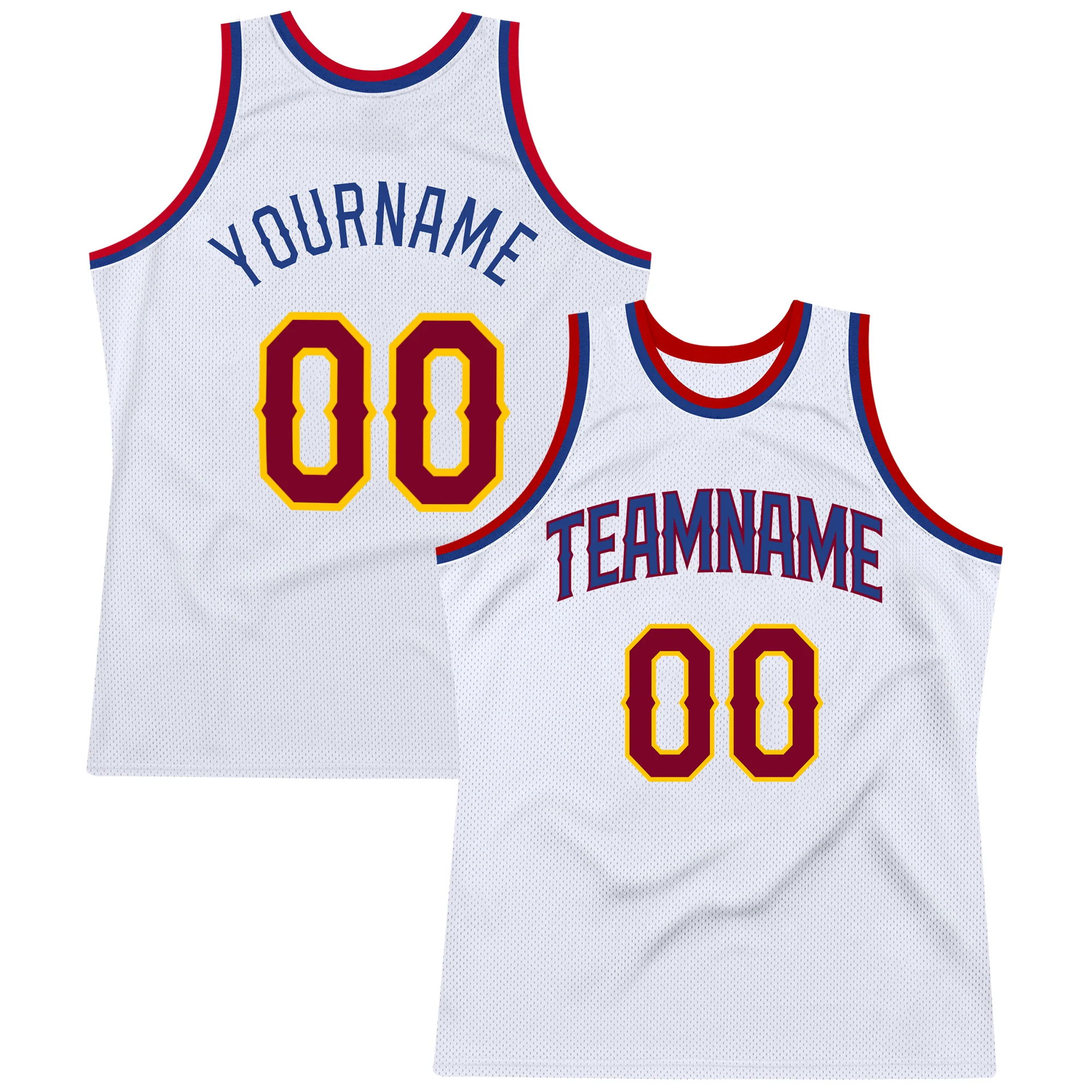 Custom White Maroon-Royal Authentic Throwback Basketball Jersey