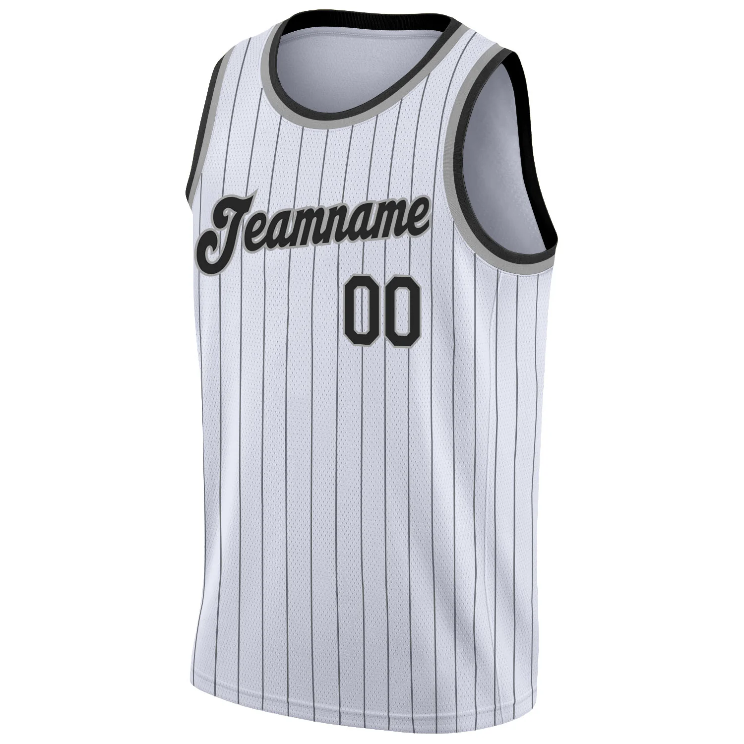 Custom White Black Pinstripe Black-Gray Authentic Basketball Jersey