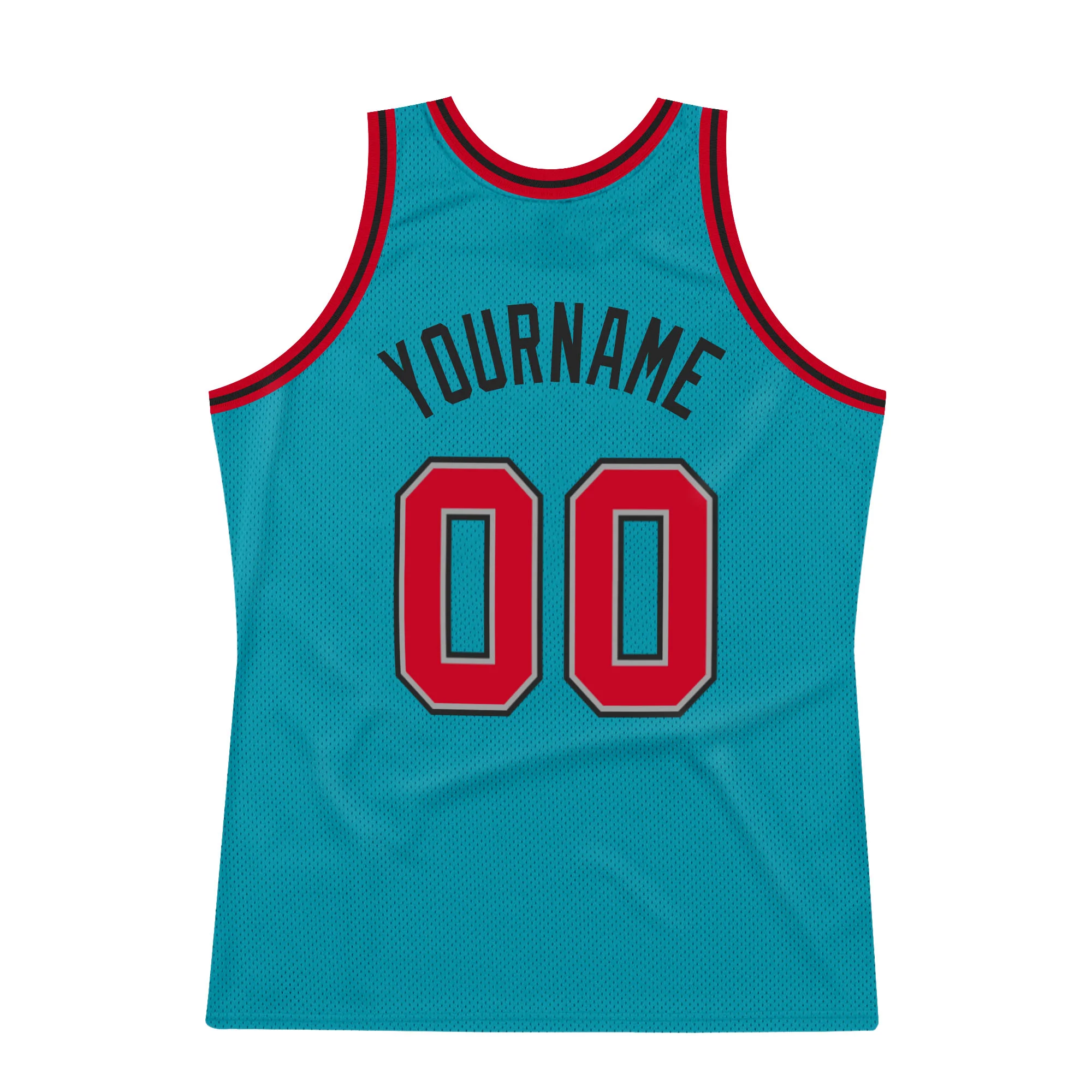 Custom Teal Red-Black Authentic Throwback Basketball Jersey