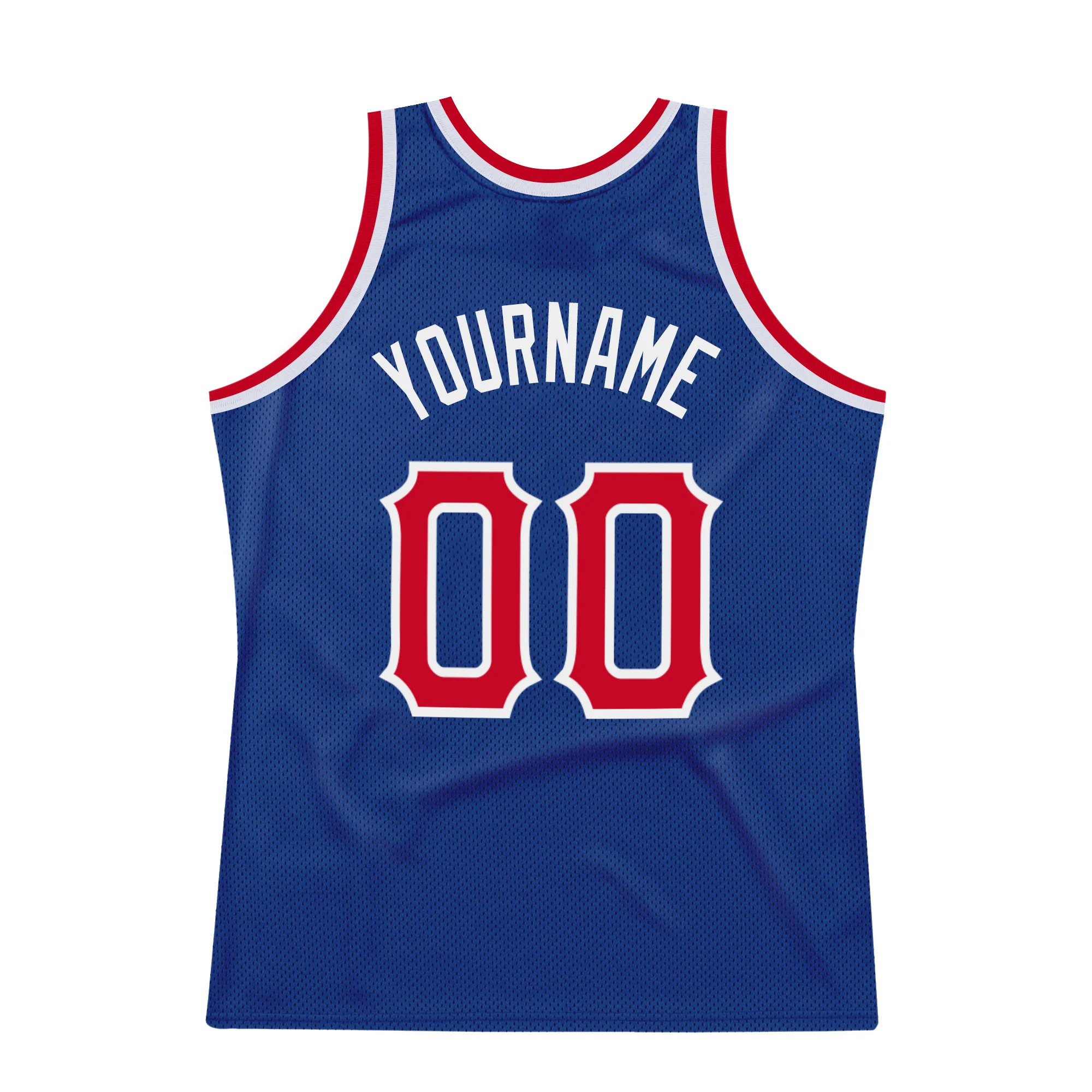 Custom Red White-Royal Authentic Throwback Basketball Jersey