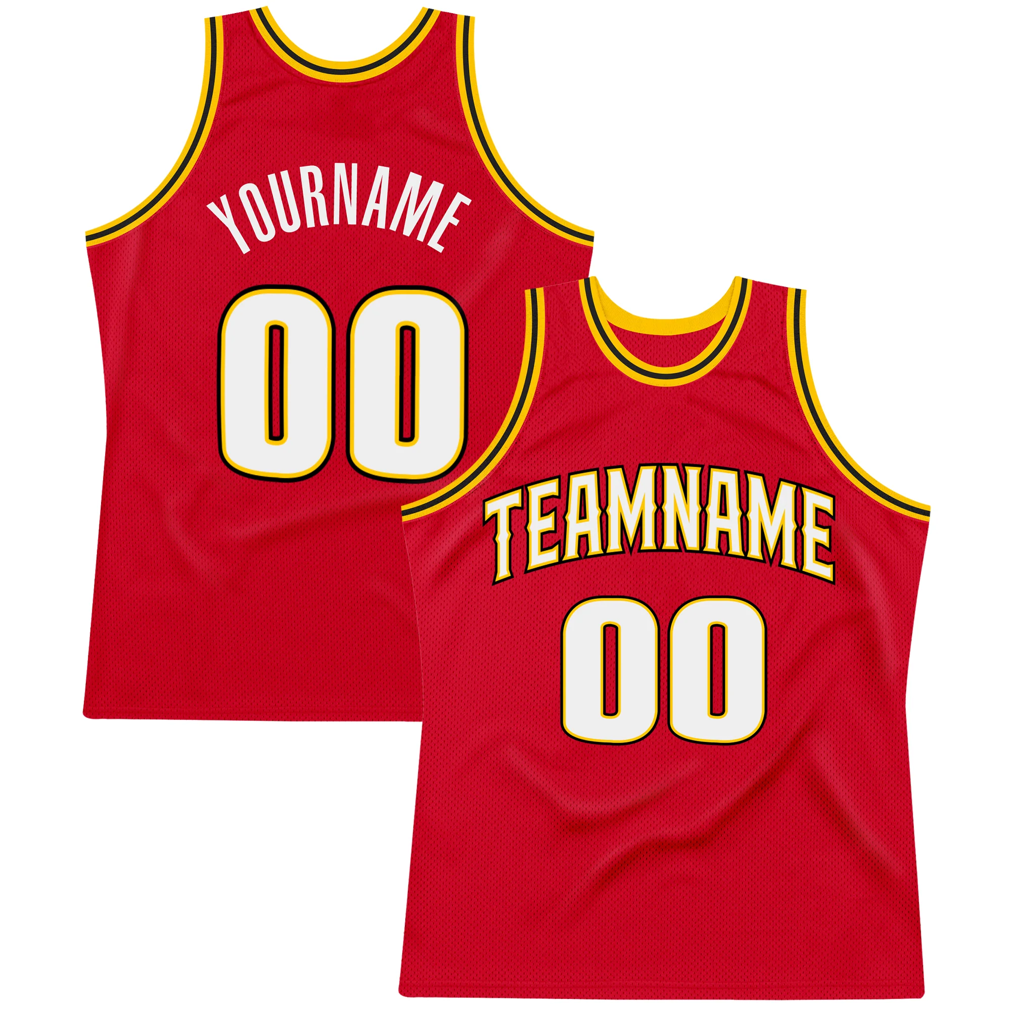 Custom Red White-Gold Authentic Throwback Basketball Jersey