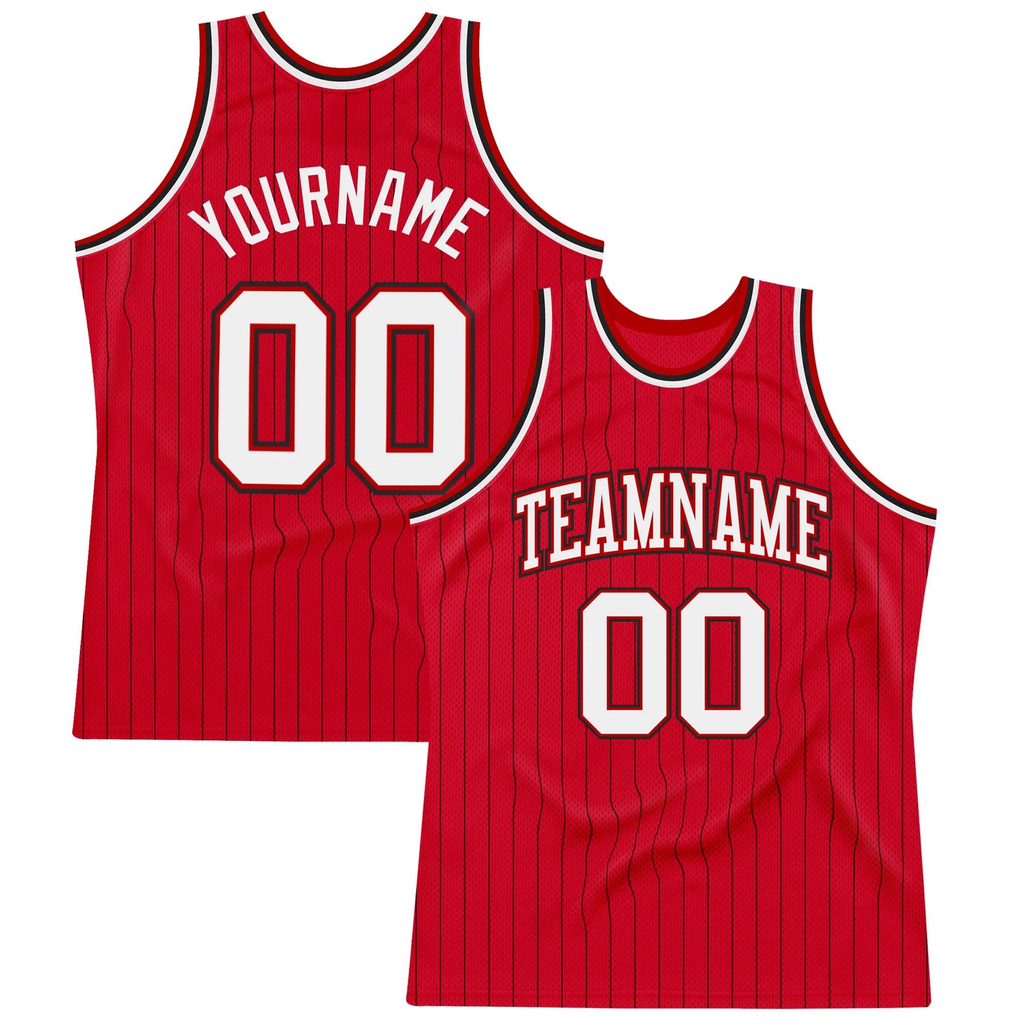 Custom Red Black Pinstripe White-Black Authentic Basketball Jersey