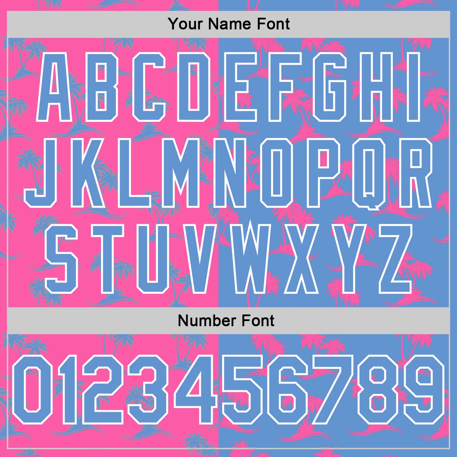 Custom Pink Light Blue-White 3D Pattern Hawaii Palm Trees Authentic Basketball Jersey