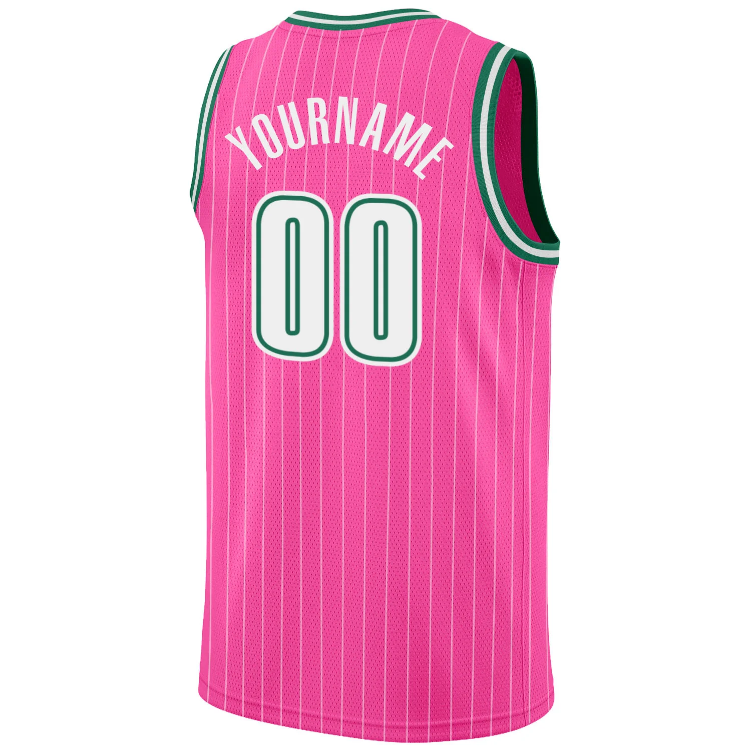 Custom Pink White Pinstripe White-Kelly Green Authentic Basketball Jersey