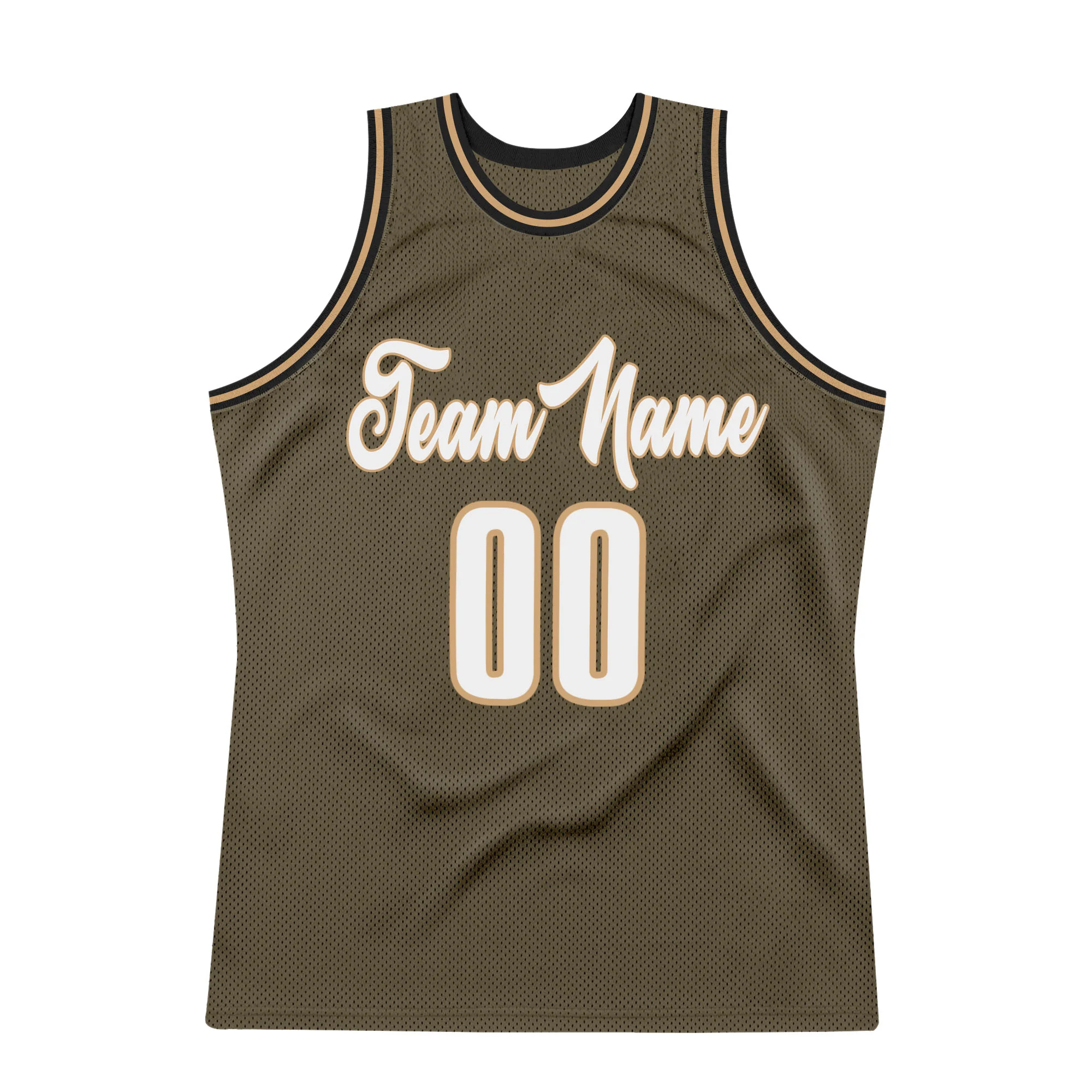 Custom Olive White-Old Gold Authentic Throwback Salute To Service Basketball Jersey