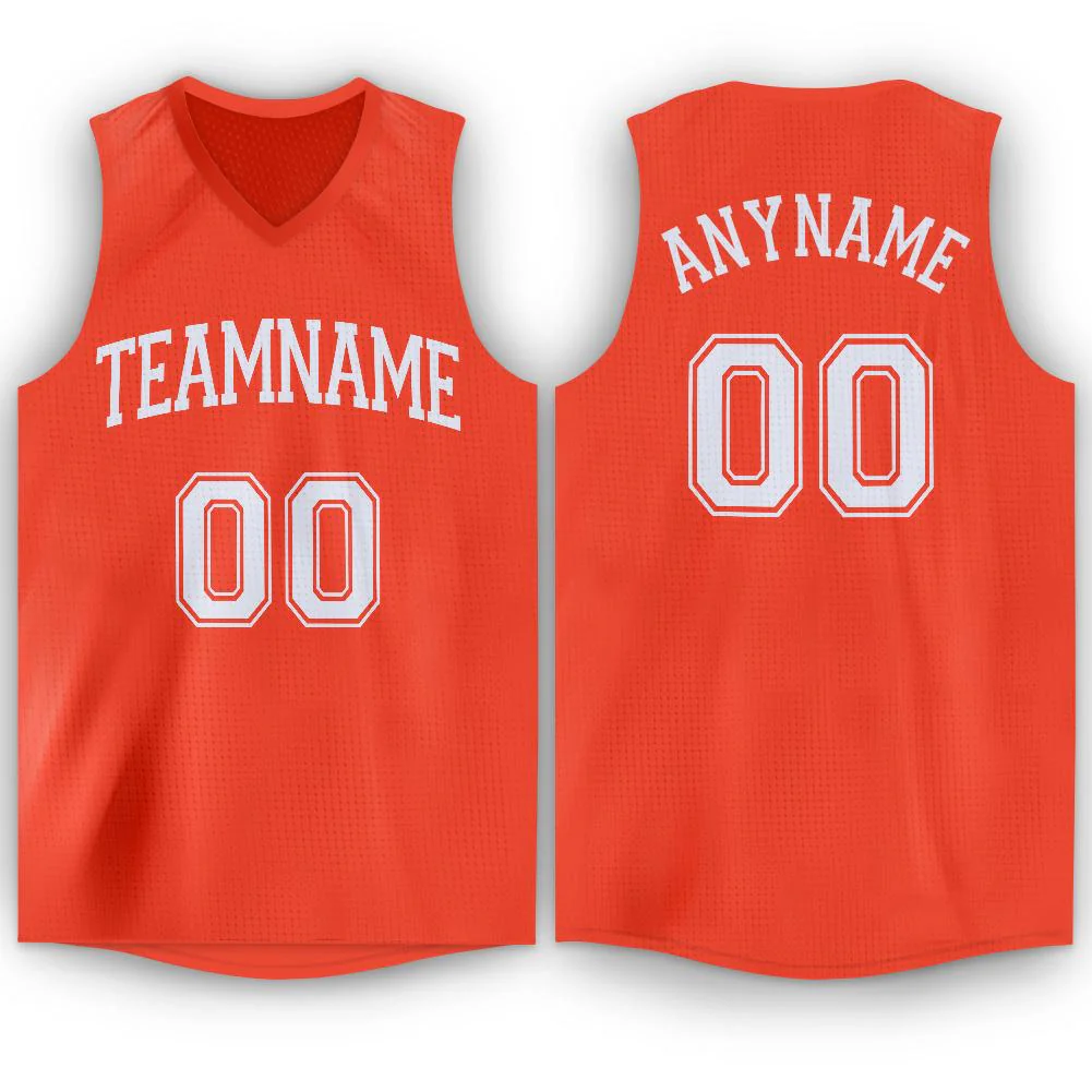 Custom Orange White Round Neck Basketball Jersey