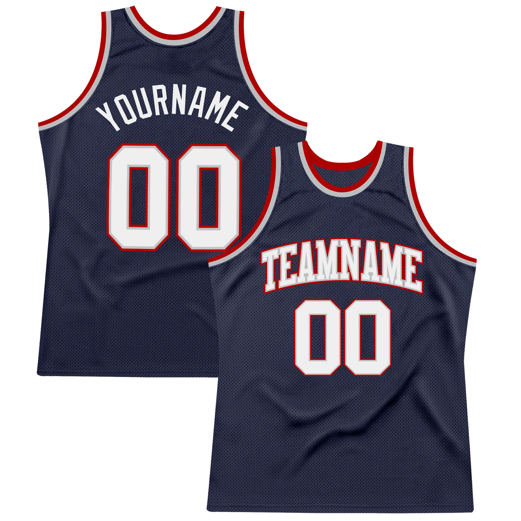 Custom Navy White Gray-Red Authentic Throwback Basketball Jersey
