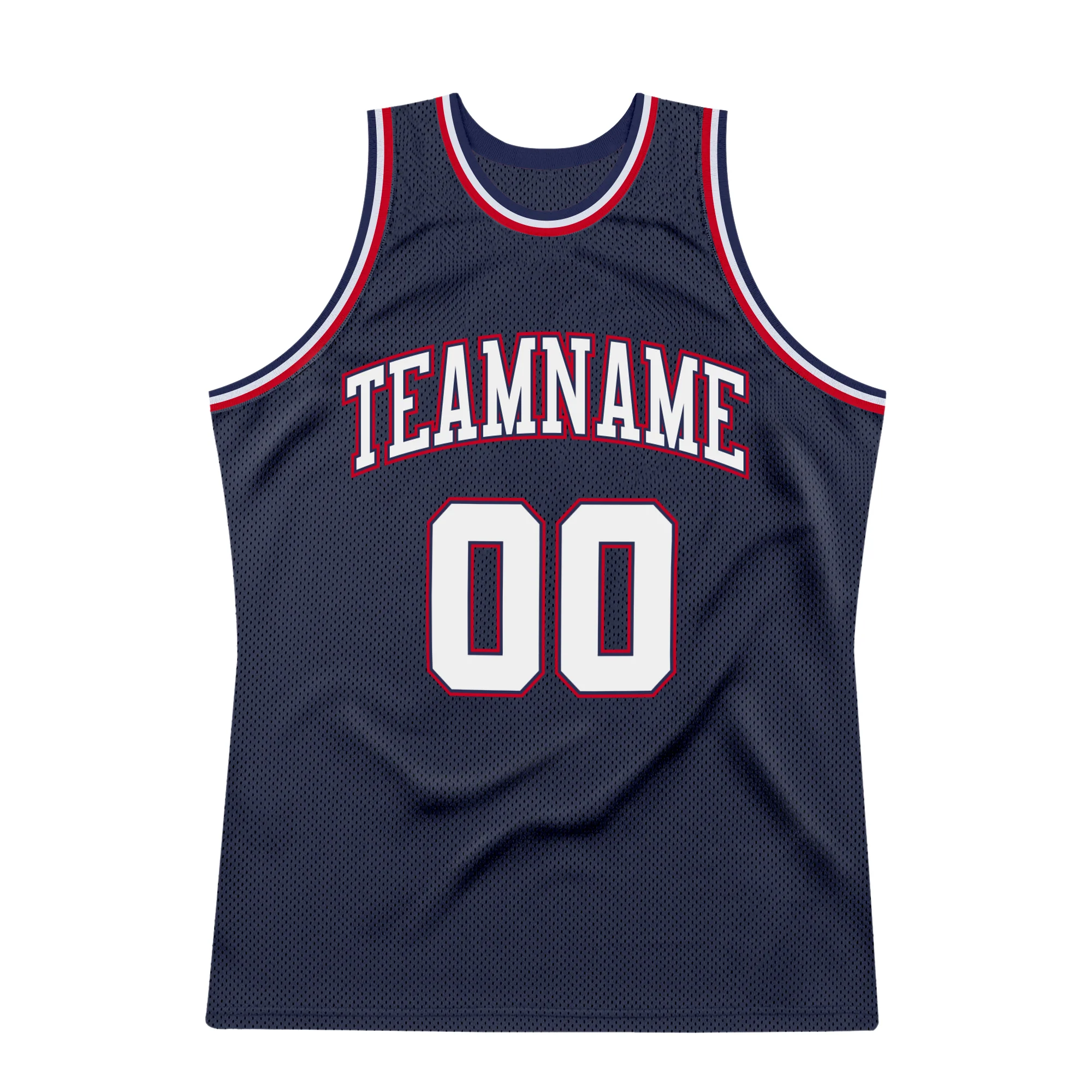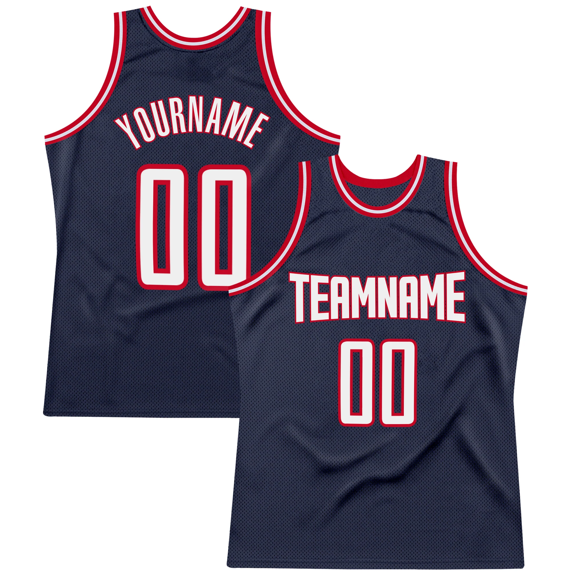 Custom Navy White-Red Authentic Throwback Basketball Jersey